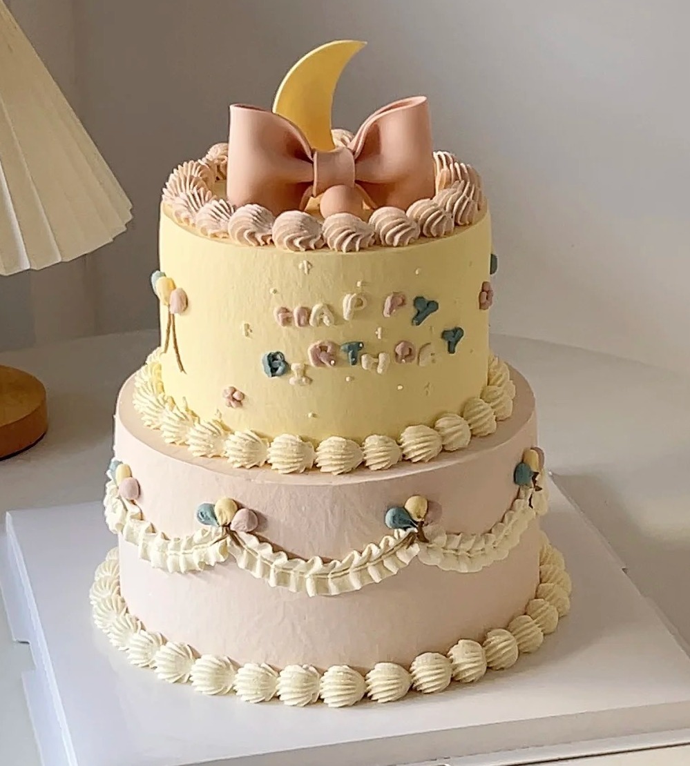 【优品系列】--【复古花边月亮蝴蝶结】女孩生日蛋糕