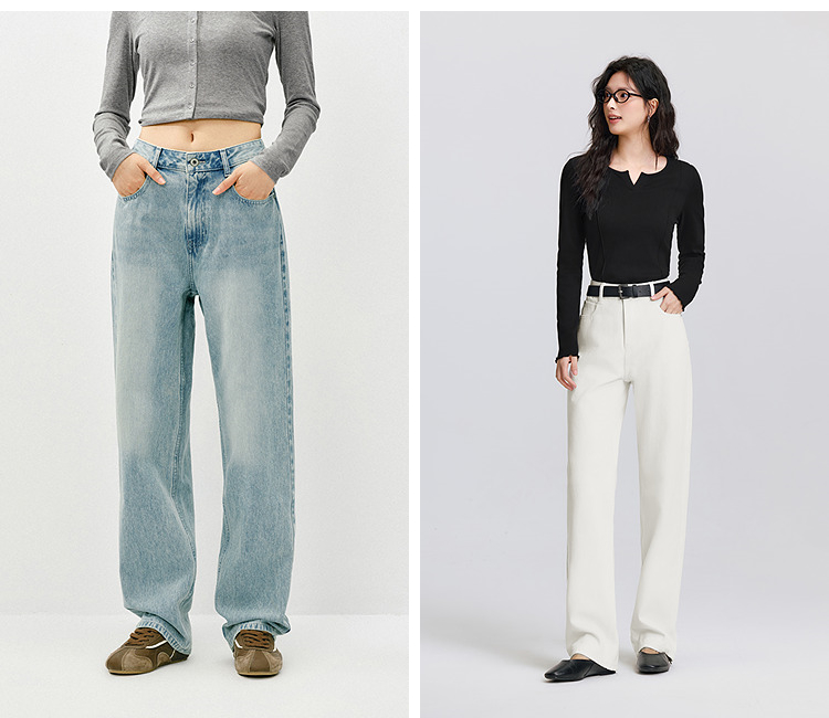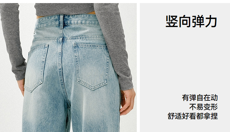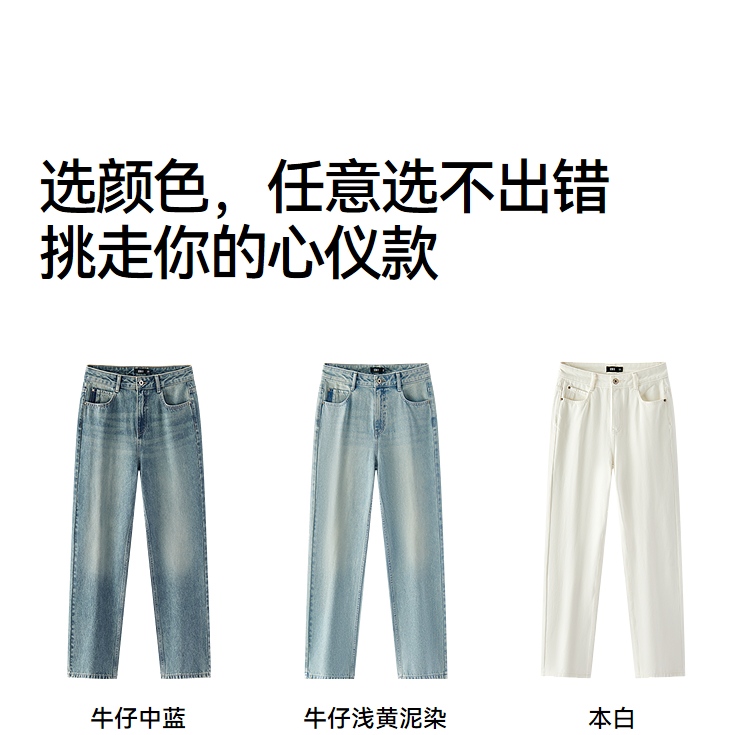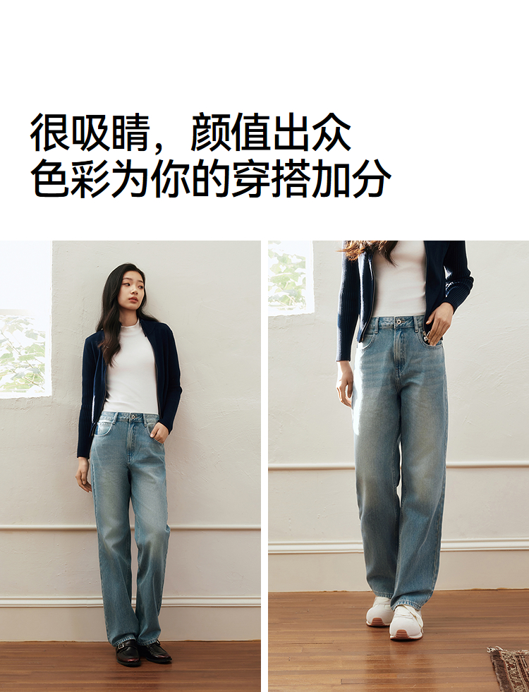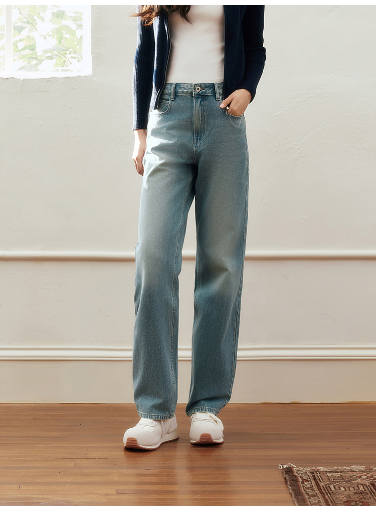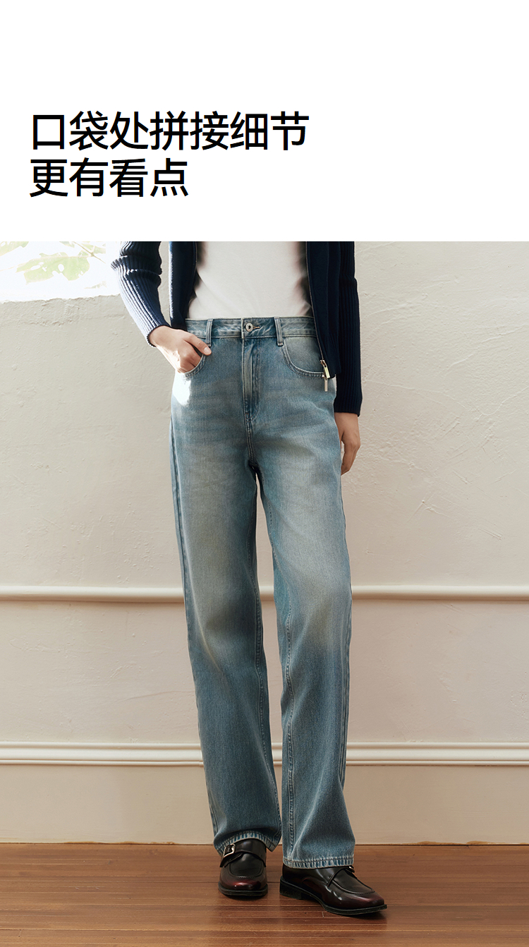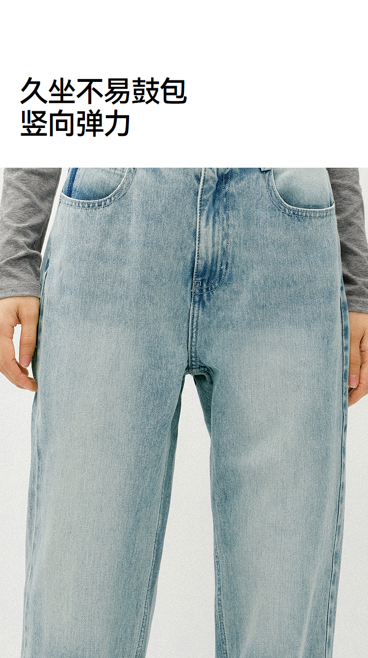 森柔|森马牛仔裤女春季做旧浅色长裤女生显瘦潮流简约时尚直筒裤
