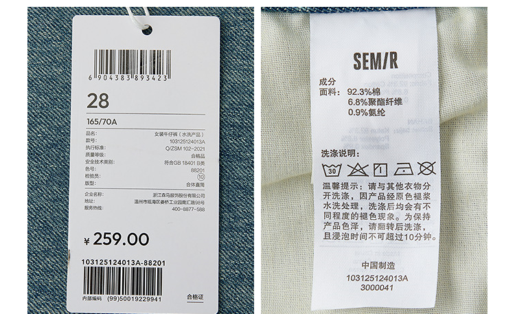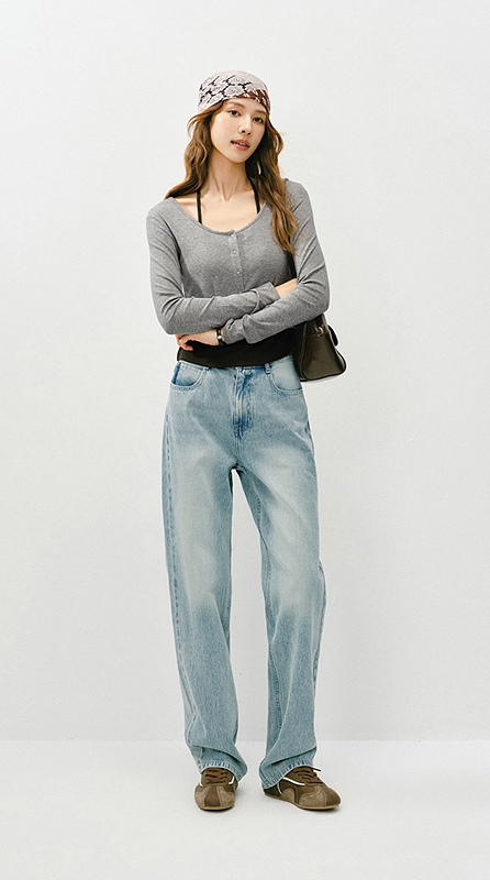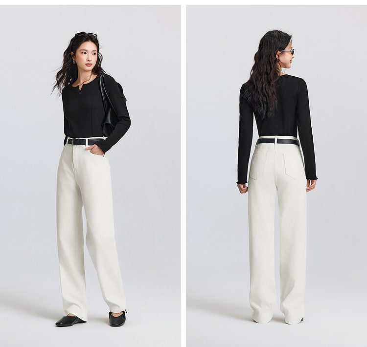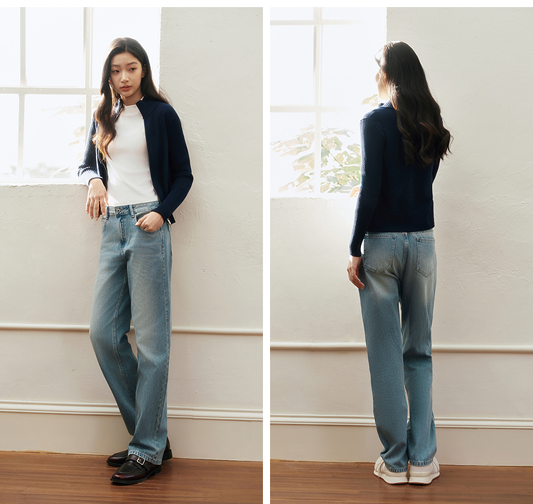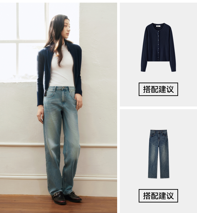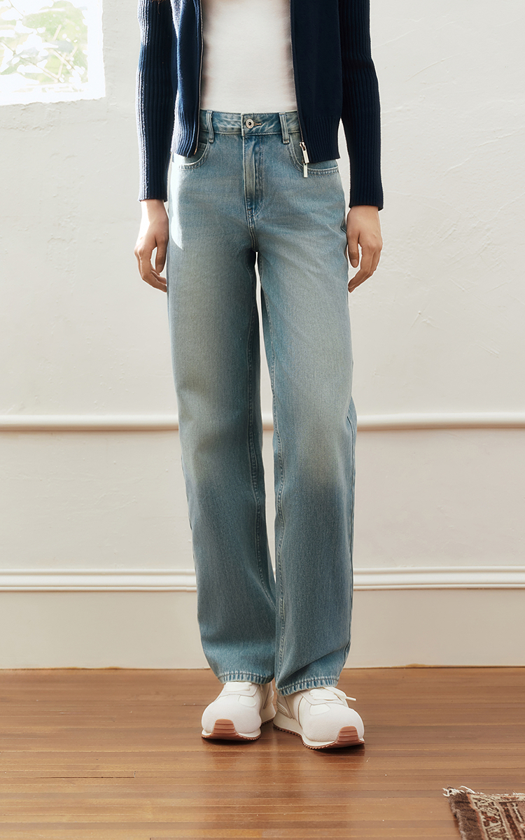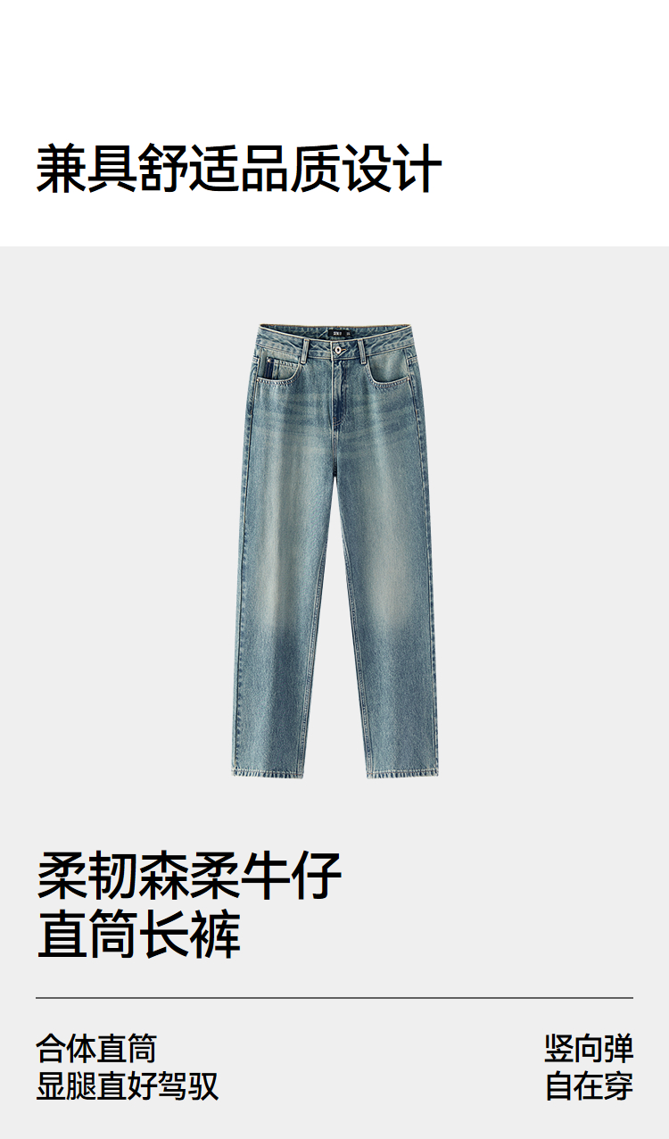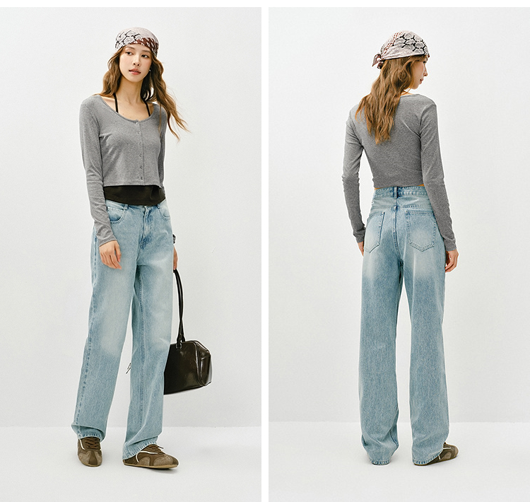 森柔|森马牛仔裤女春季做旧浅色长裤女生显瘦潮流简约时尚直筒裤