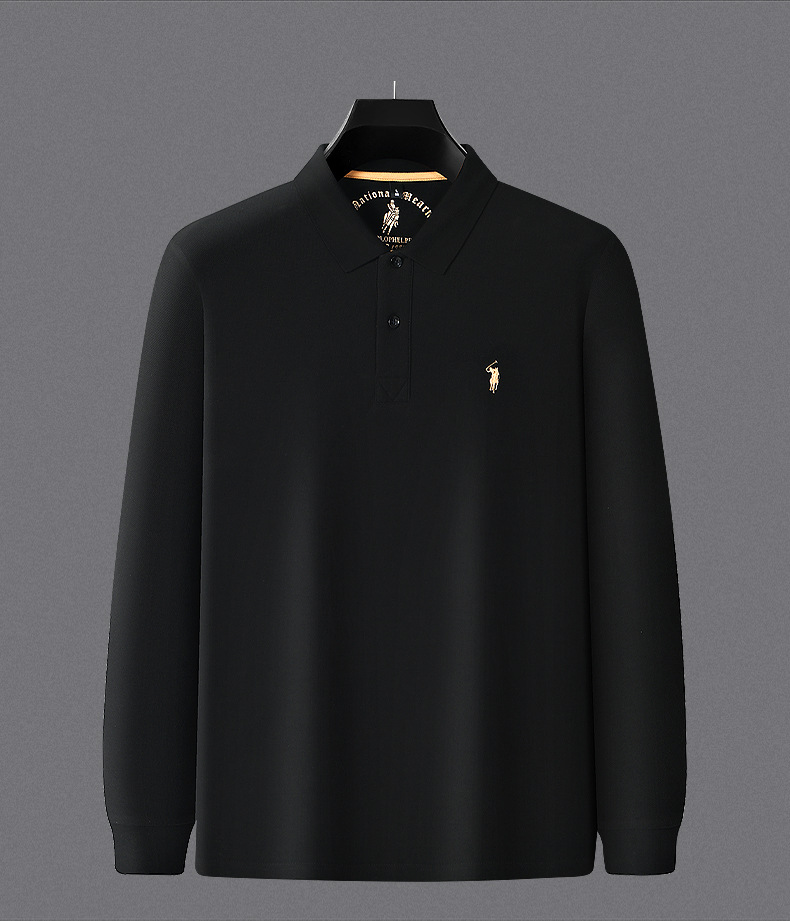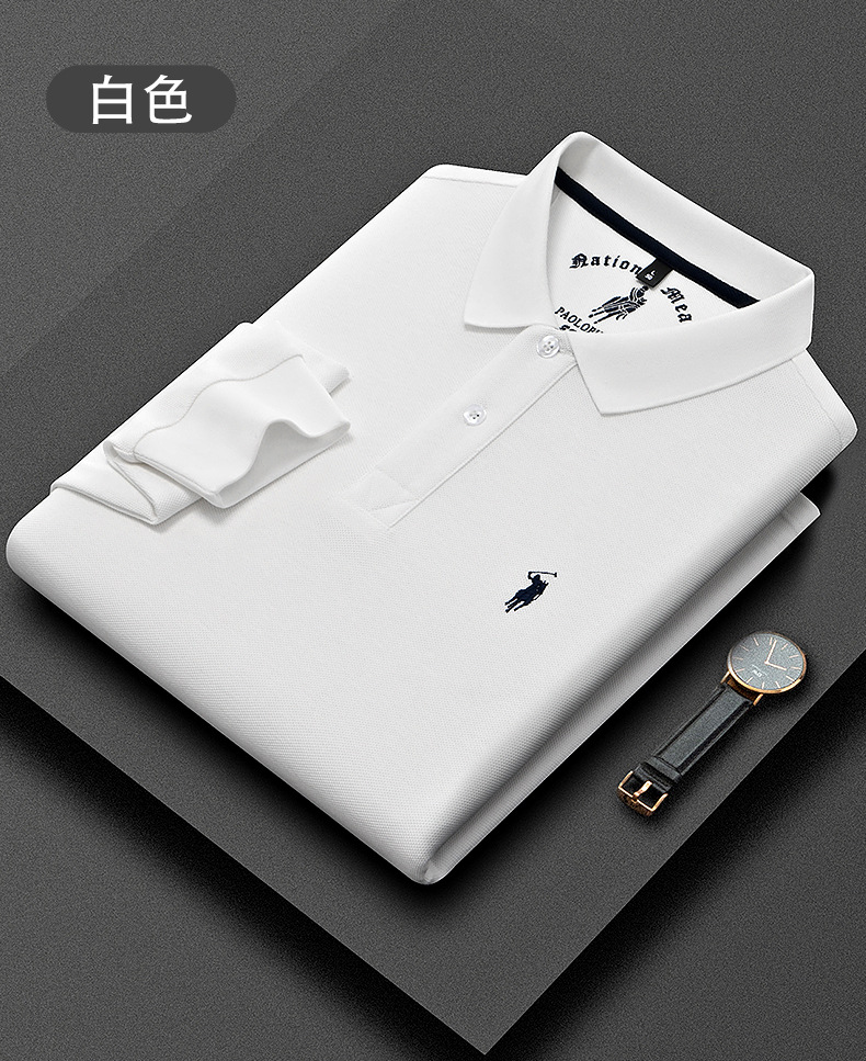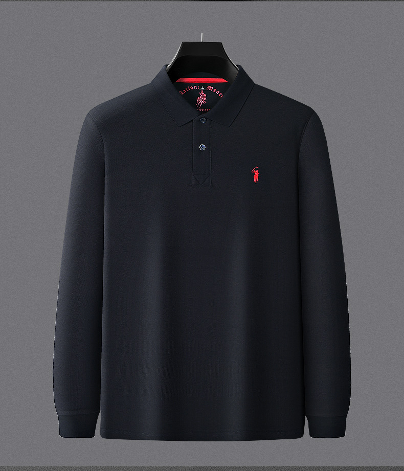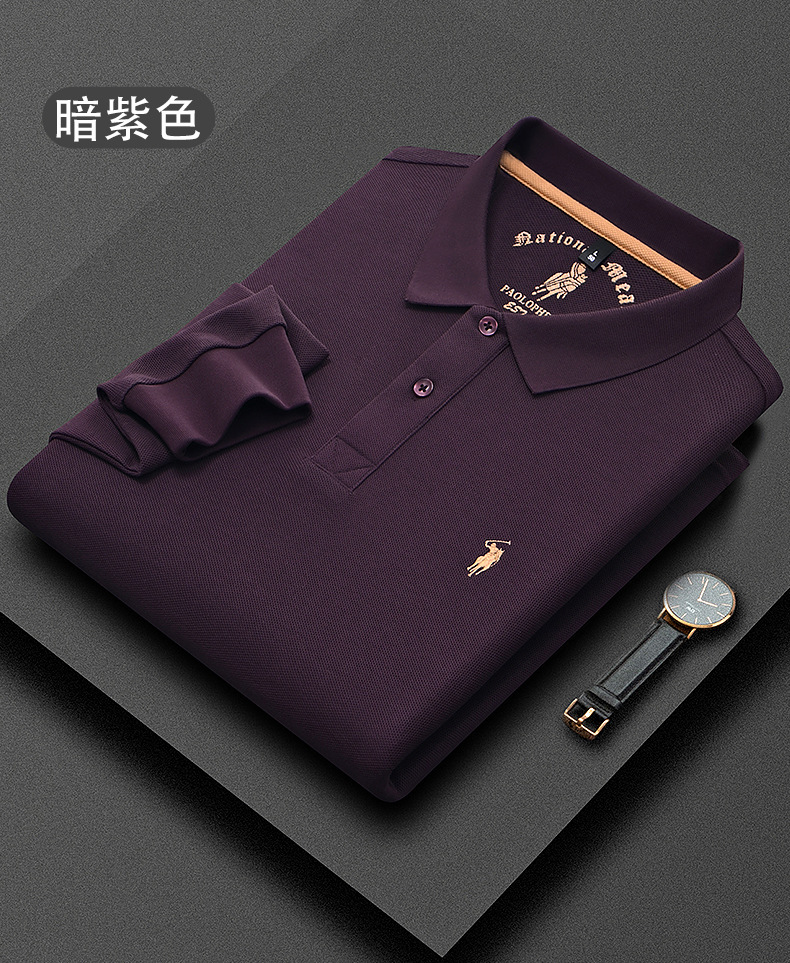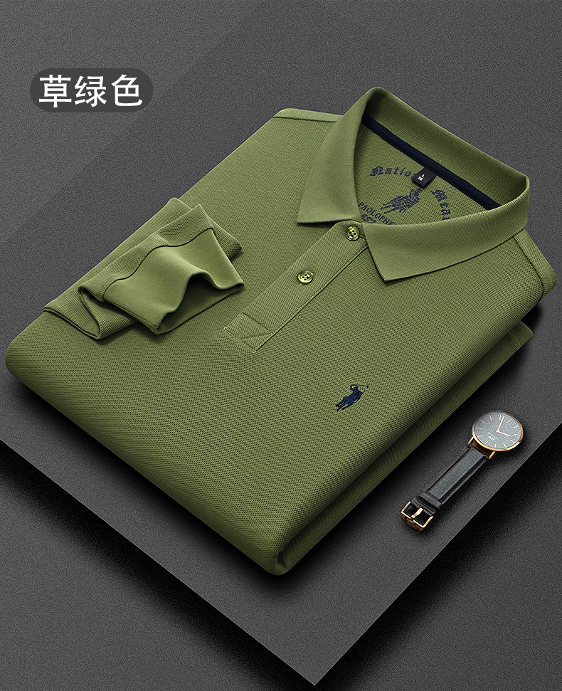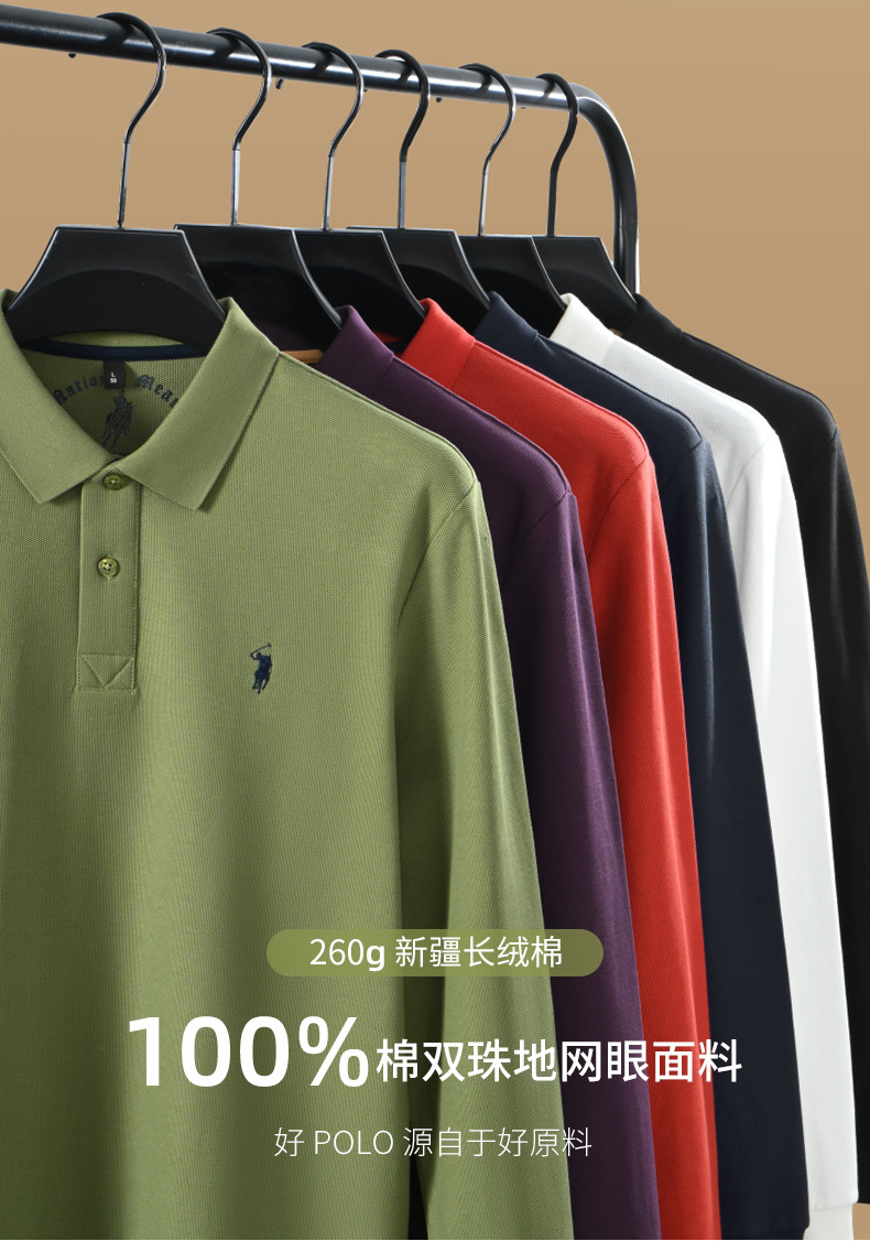 秋季上新!【260g新疆长绒棉!双珠地网眼面料~】派森龙秋冬纯棉 双面珠地男士POLO衫 长袖翻领长绒棉 保罗刺绣男POLO上衣-QB