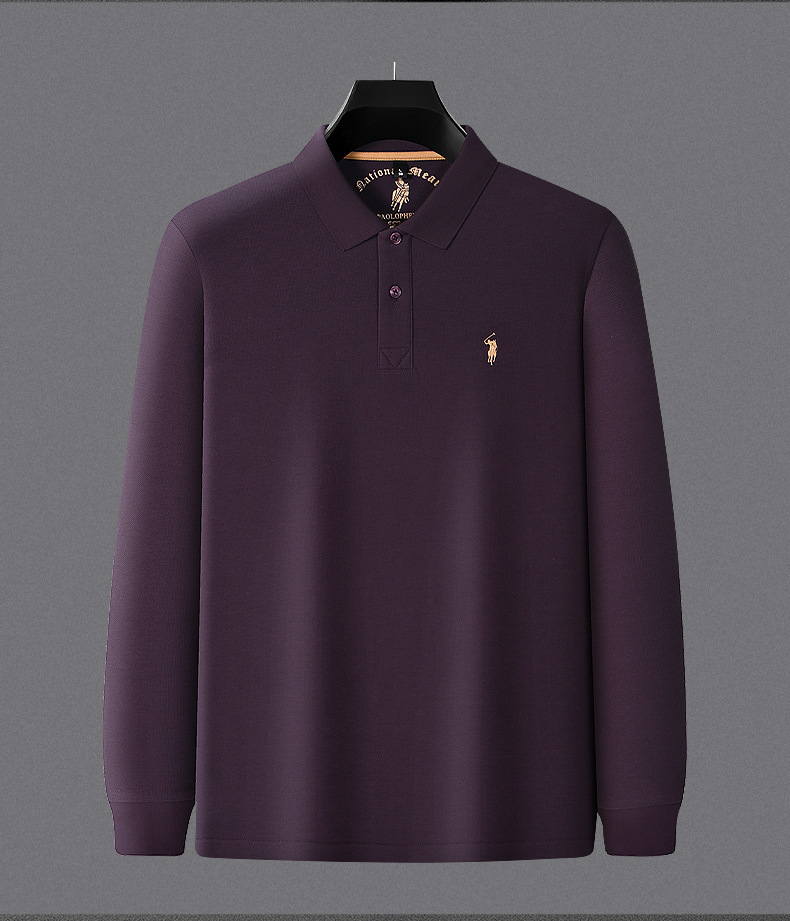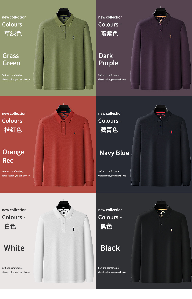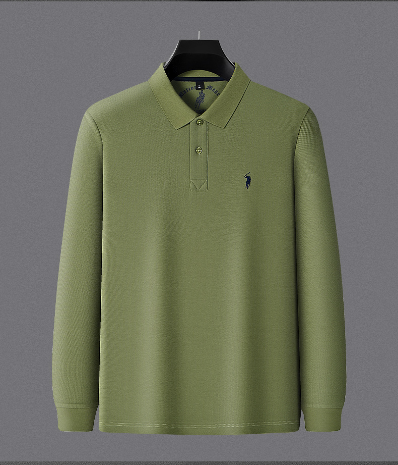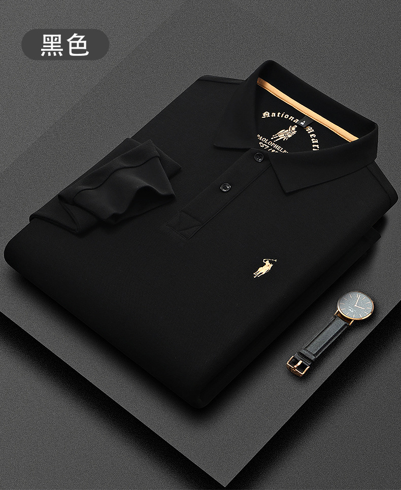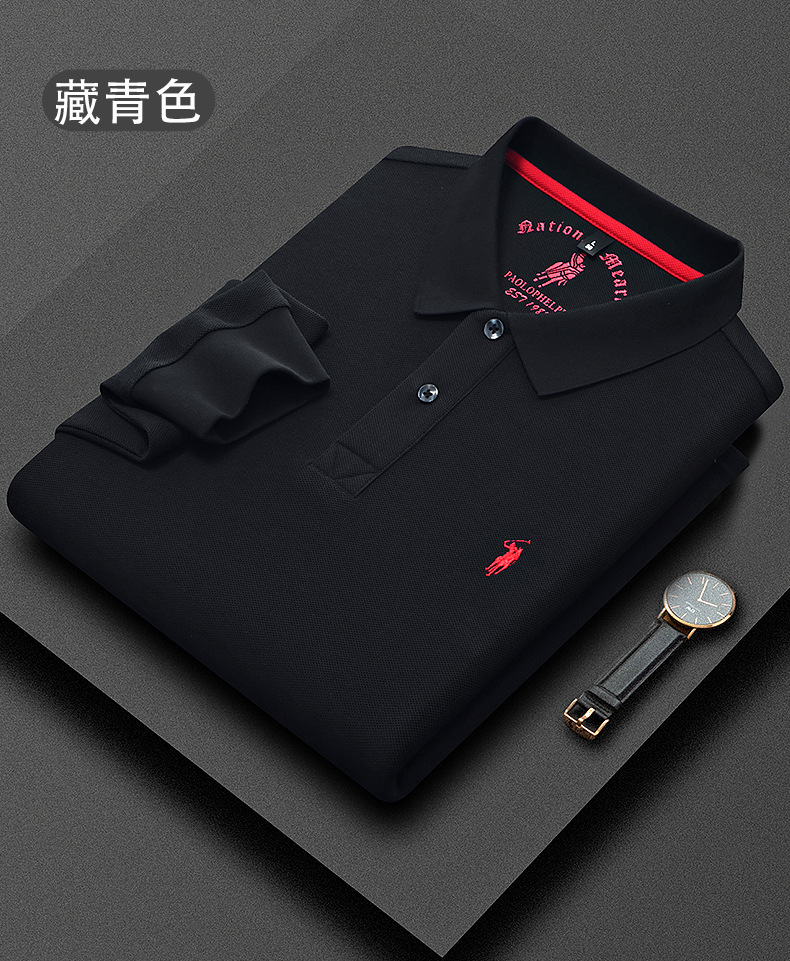 秋季上新!【260g新疆长绒棉!双珠地网眼面料~】派森龙秋冬纯棉 双面珠地男士POLO衫 长袖翻领长绒棉 保罗刺绣男POLO上衣-QB