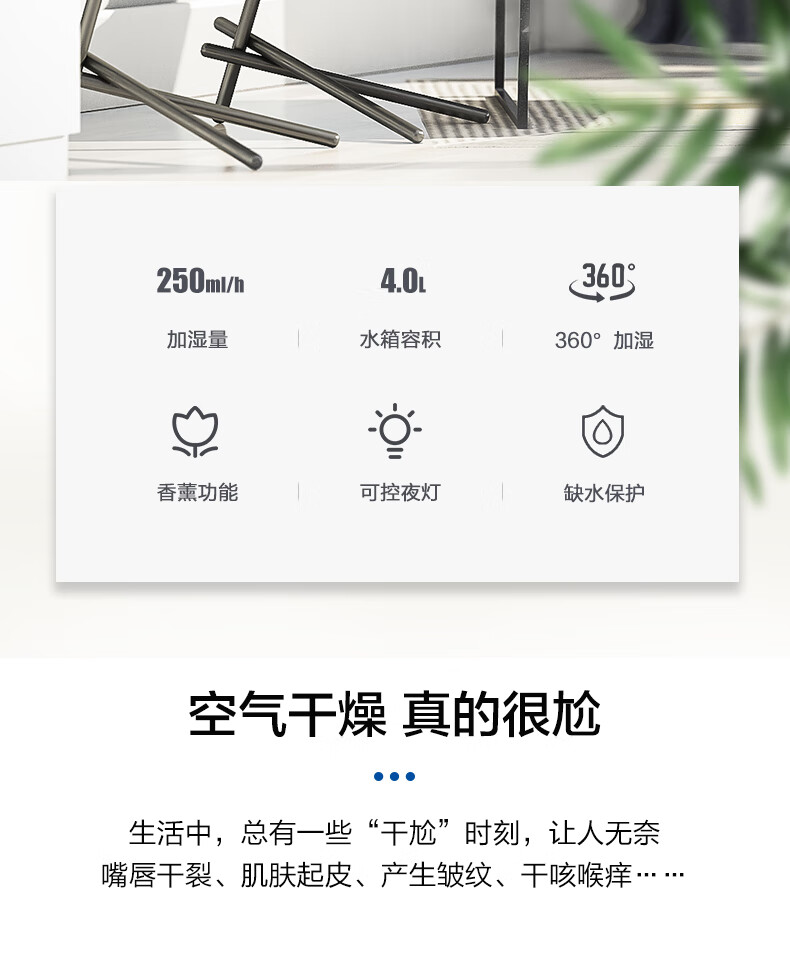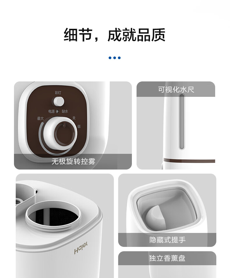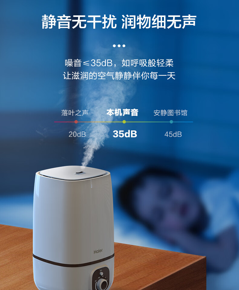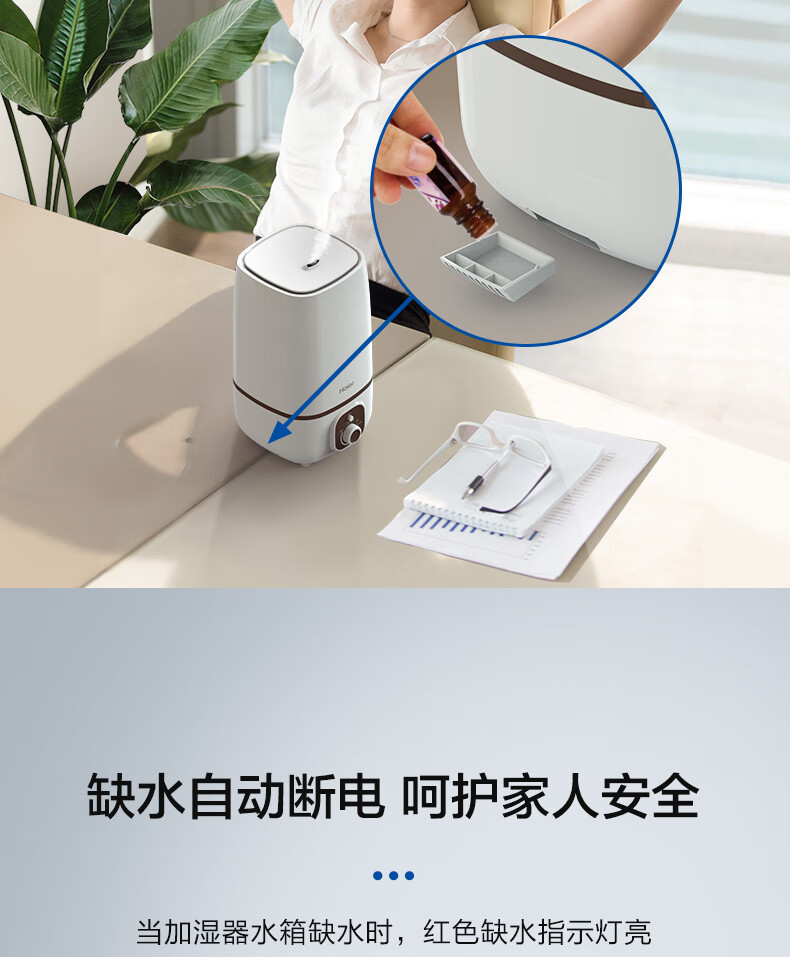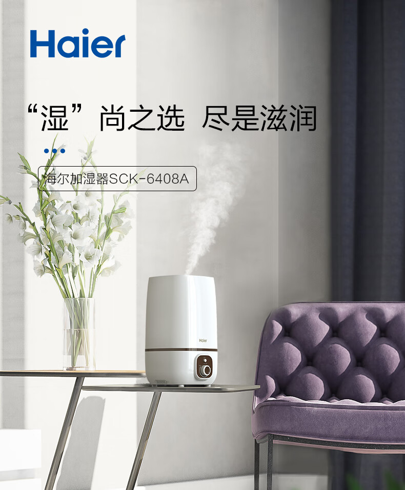 海尔Haier加湿器4L彩灯缺水保护不湿桌面 SCK-6408A 白色