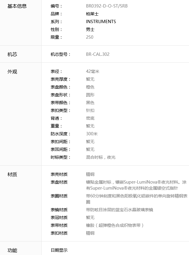 Bell & Ross 柏莱士 INSTRUMENTS系列 BR0392-D-0-ST/SRB 潜水休闲腕表