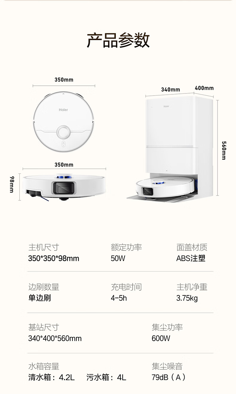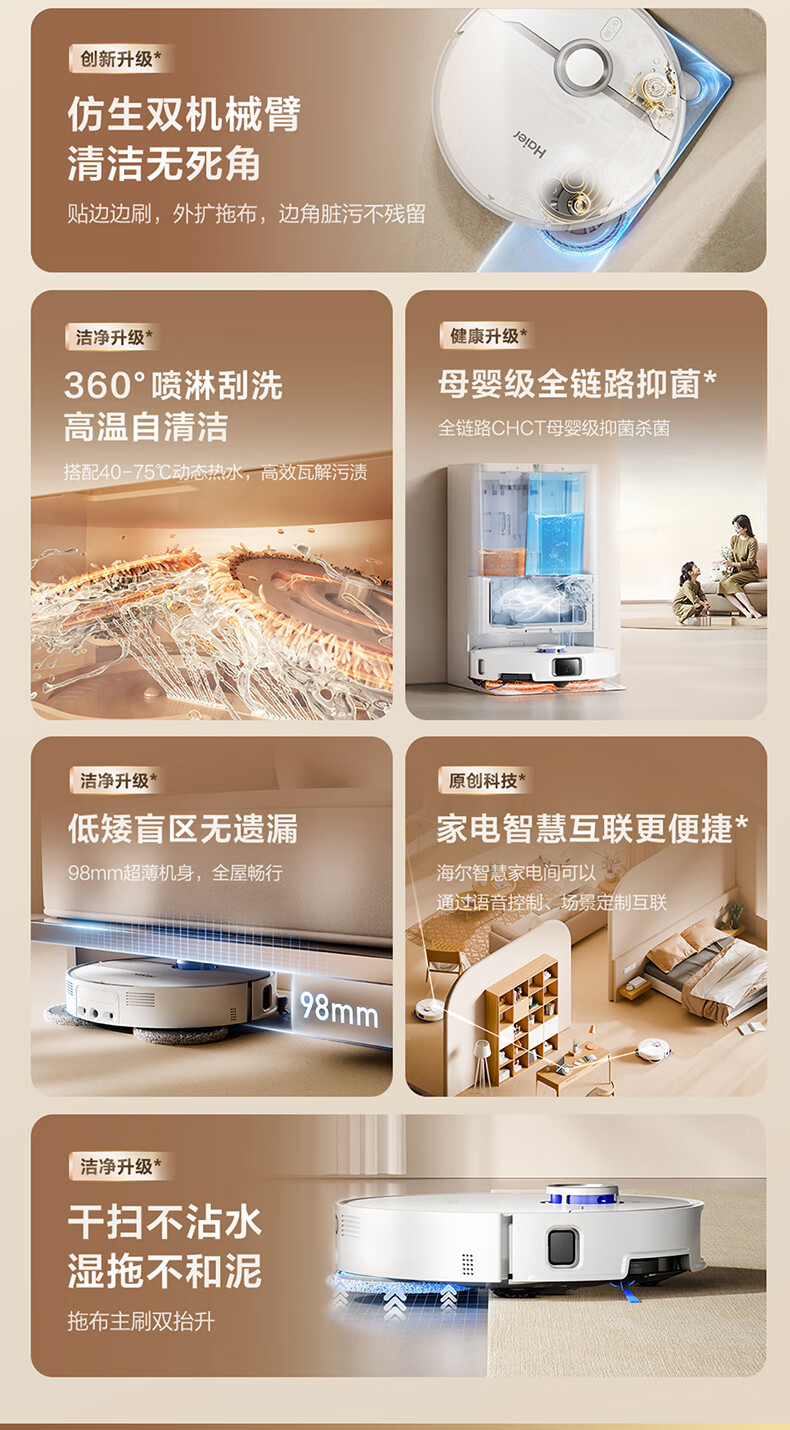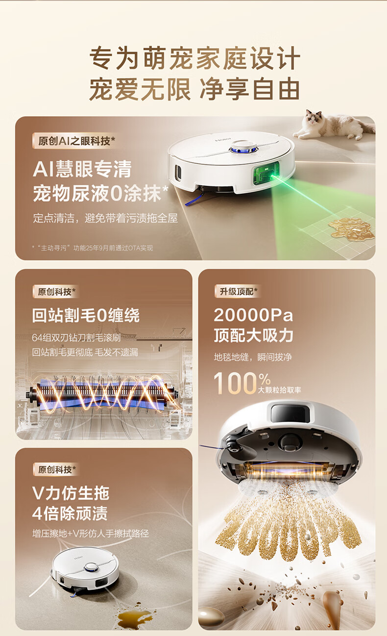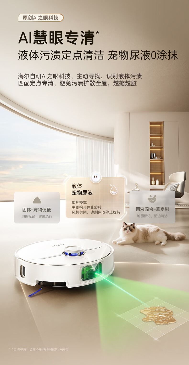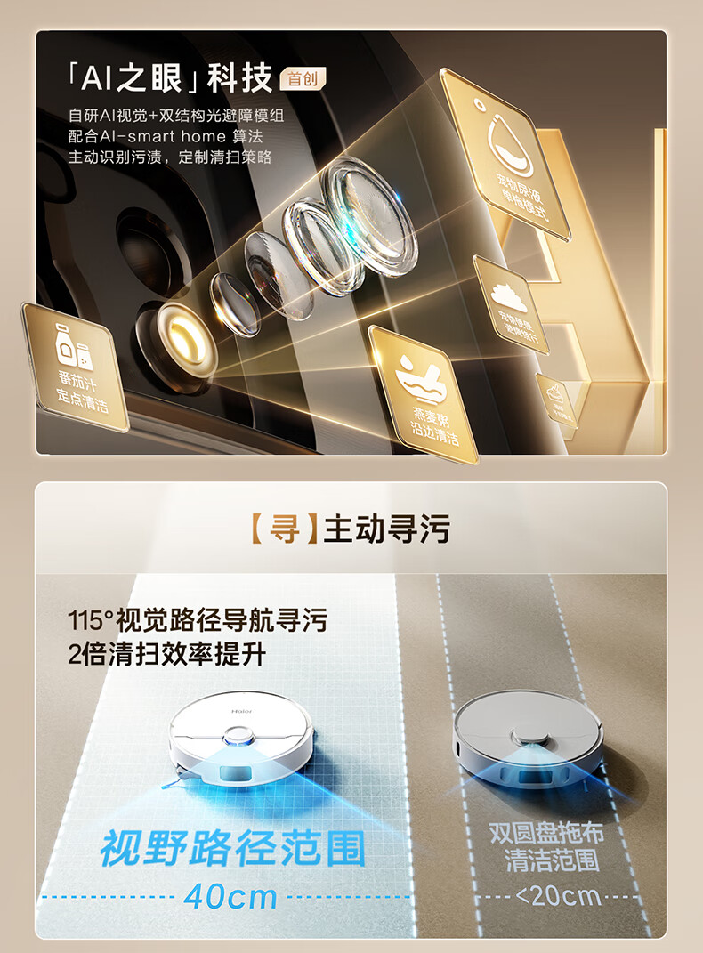 海尔【周总同款】扫地机器人宠爱V40扫拖一体自动清洗洗地机智能家用AI定点清洁双机械臂毛发0缠水箱版