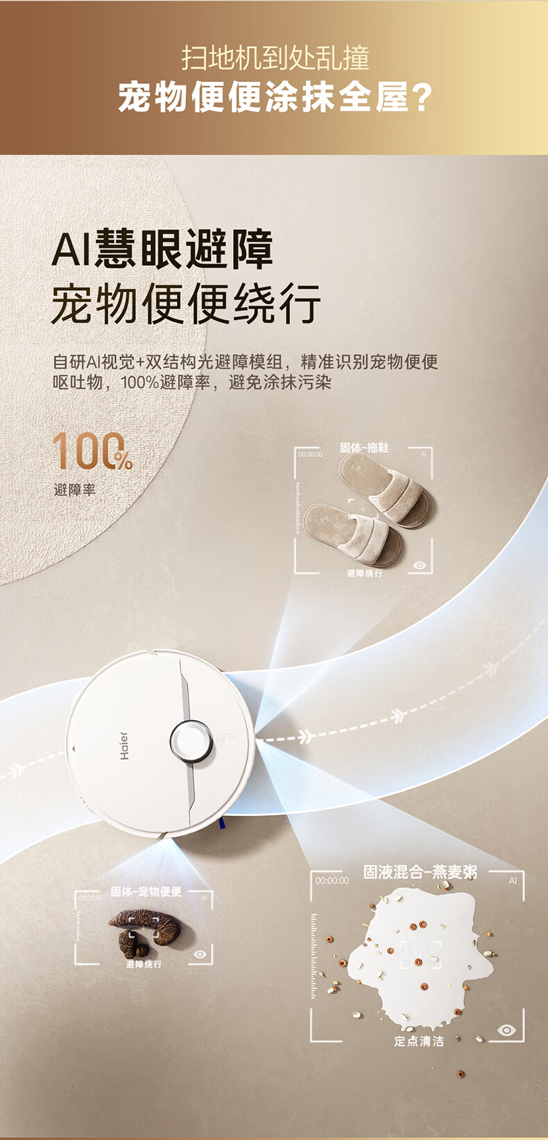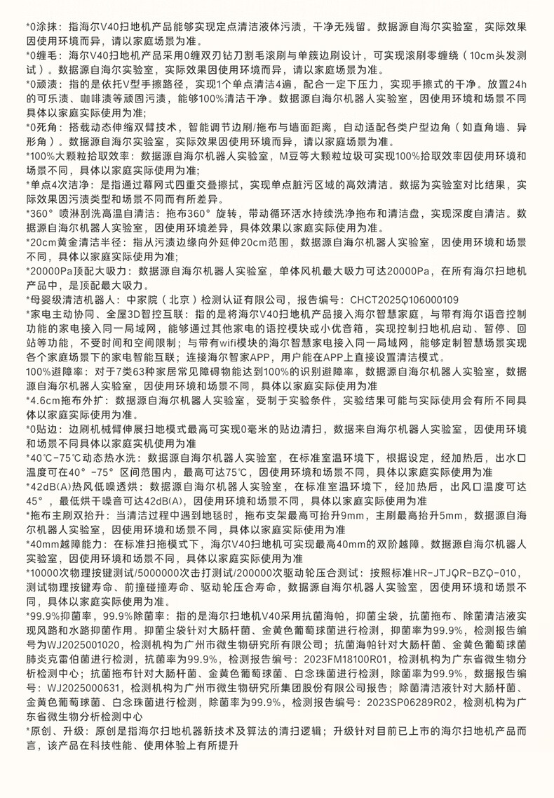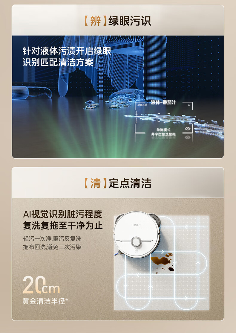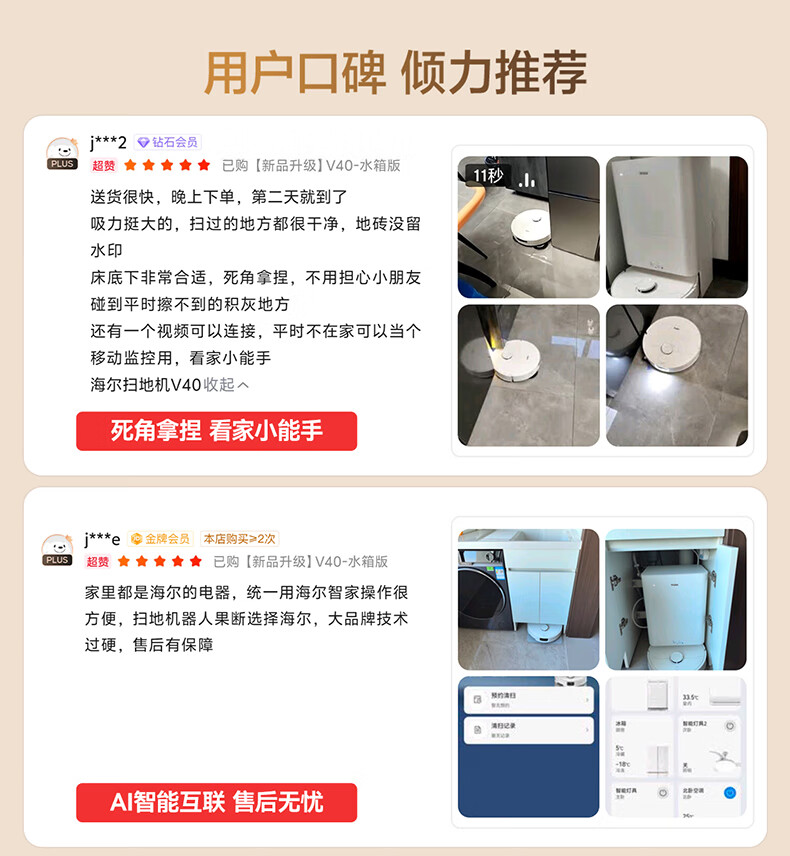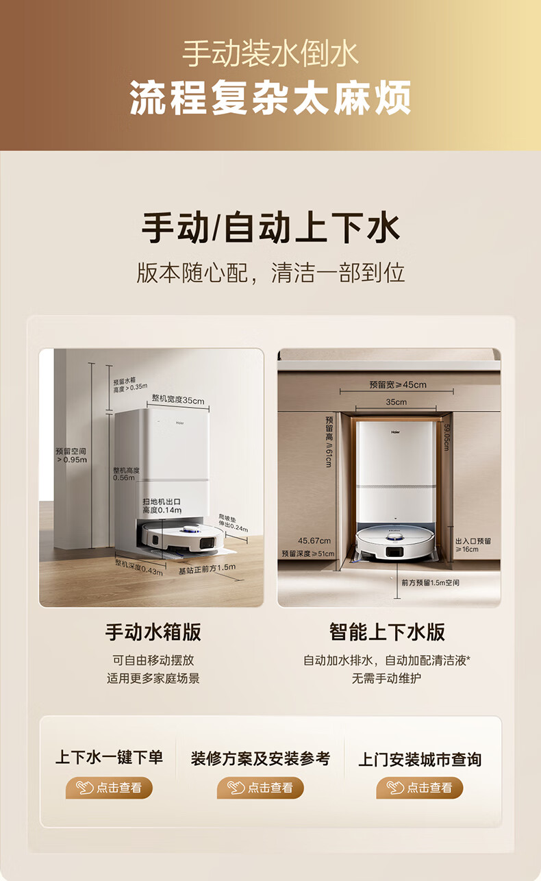 海尔【周总同款】扫地机器人宠爱V40扫拖一体自动清洗洗地机智能家用AI定点清洁双机械臂毛发0缠水箱版