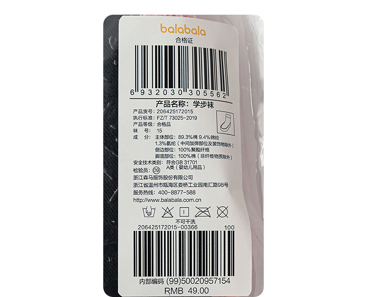 巴拉巴拉宝宝地板袜防滑点胶冬婴幼儿拼接全毛圈短袜