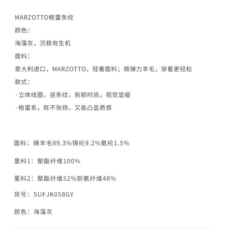 callisto海藻灰格雷条纹进口绵羊毛混纺便西