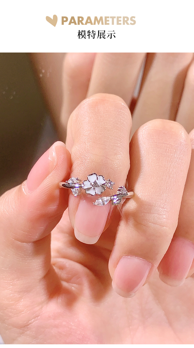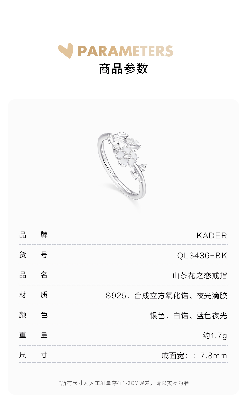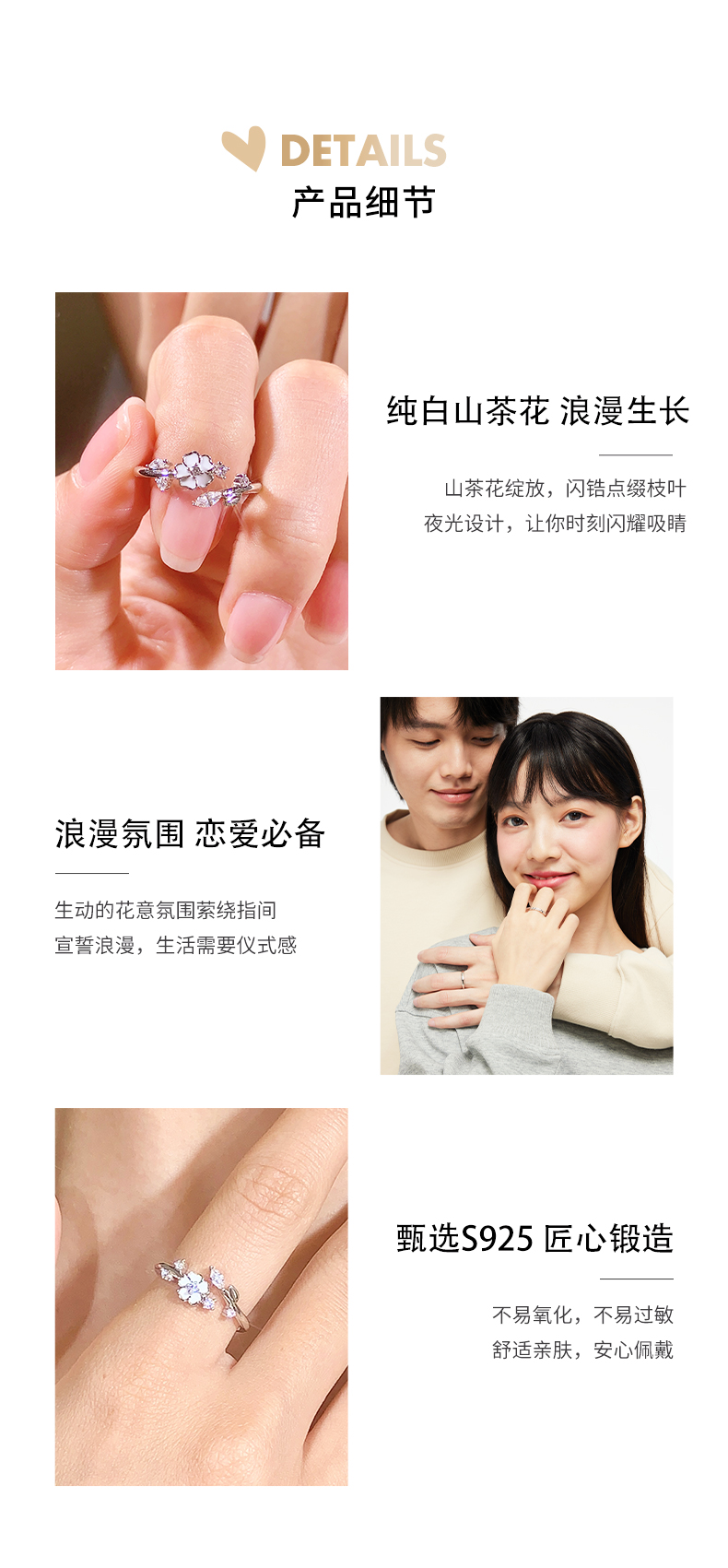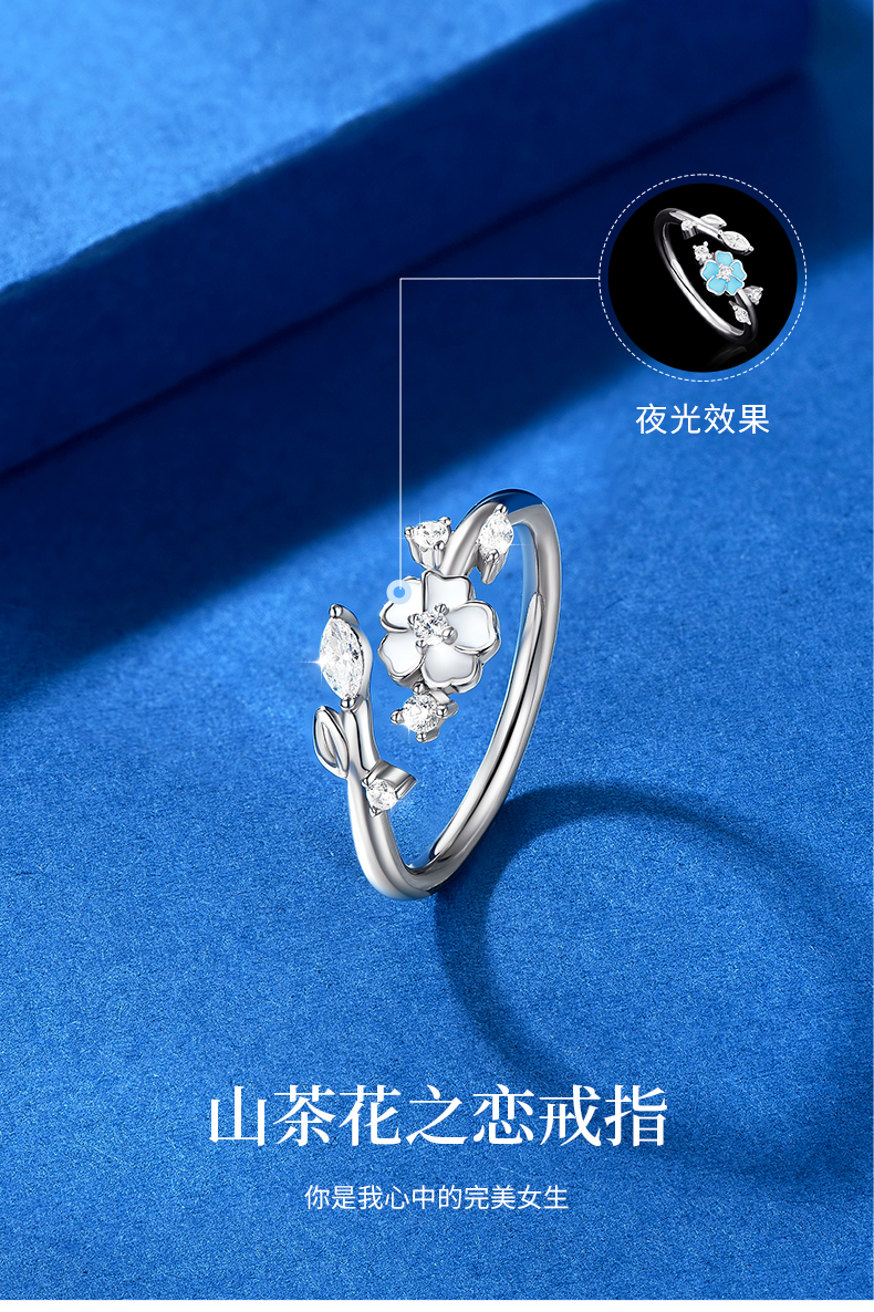 卡蒂罗/KADER 山茶花之恋戒指 浪漫花朵原创设计开口可调节夜光女戒一只 繁花似锦发光趣味手饰轻奢梦幻 925银