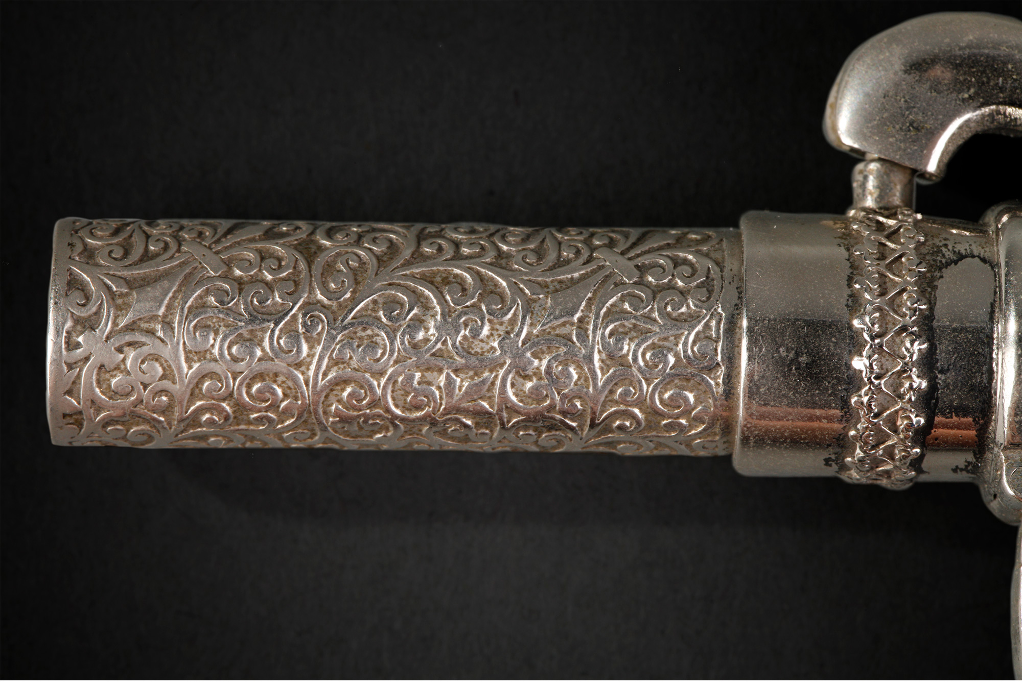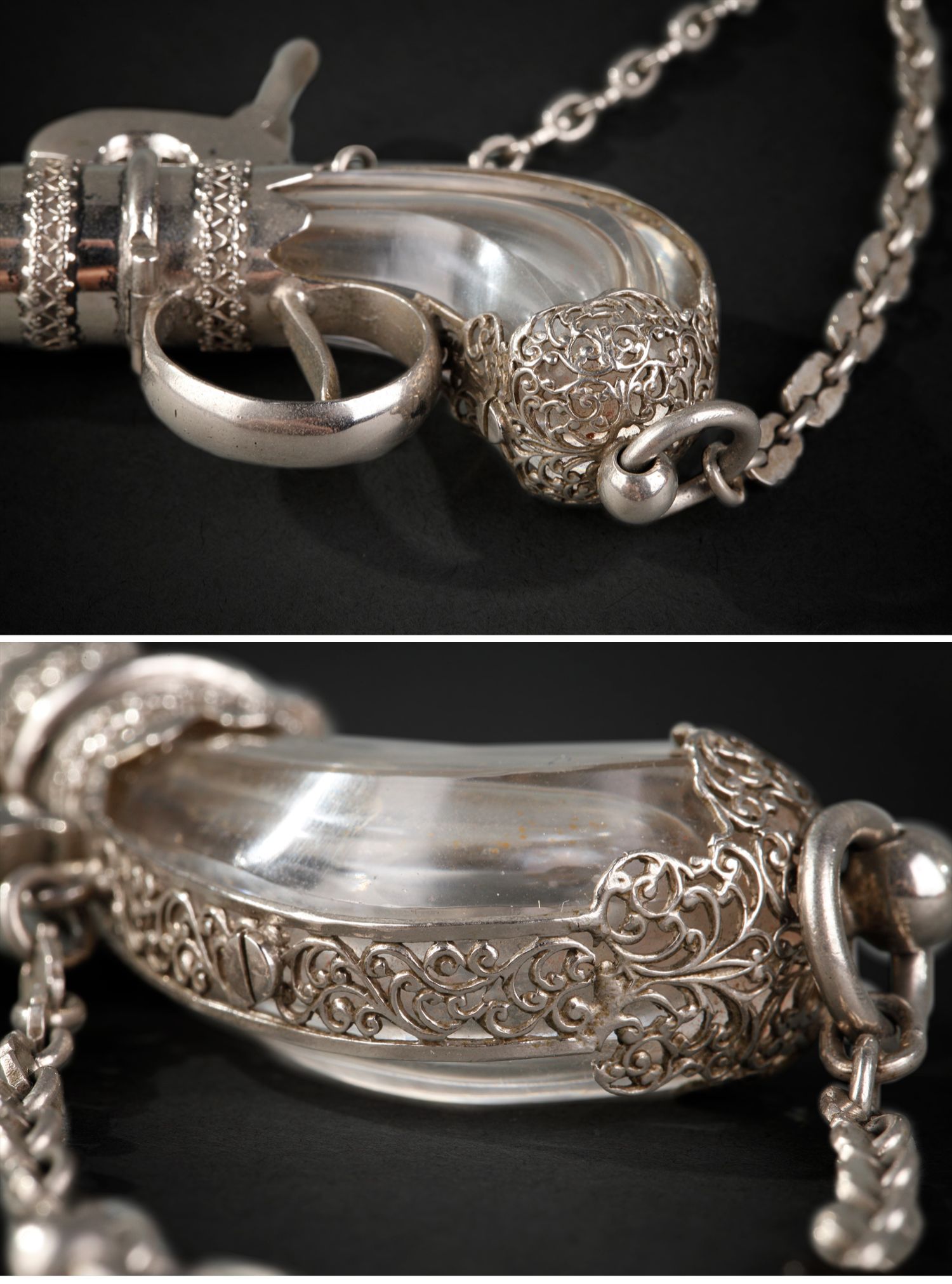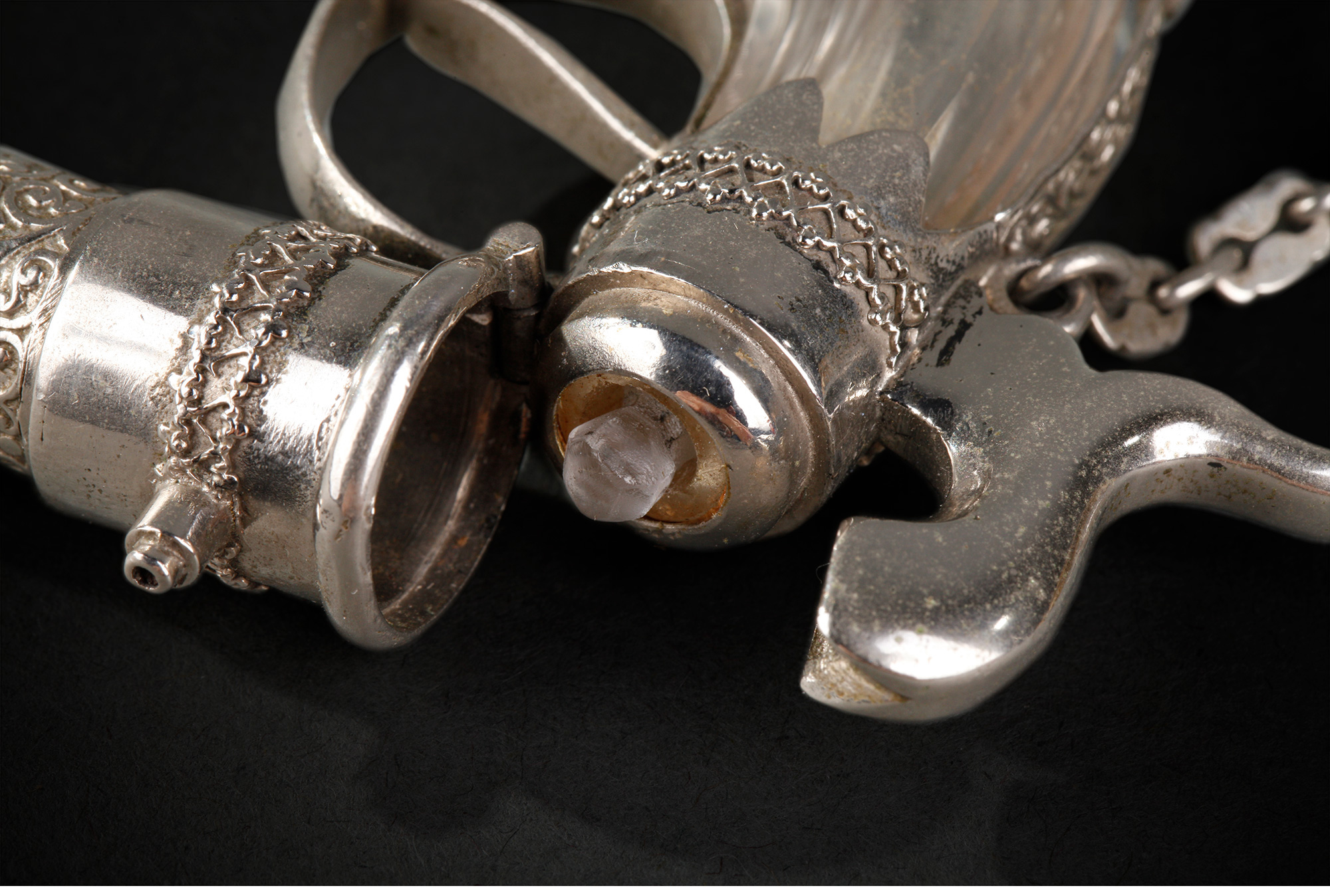 独角鹿西洋古董欧洲镀银雕花手枪造型水晶香水瓶