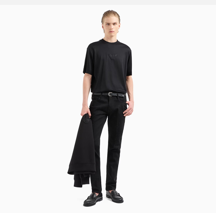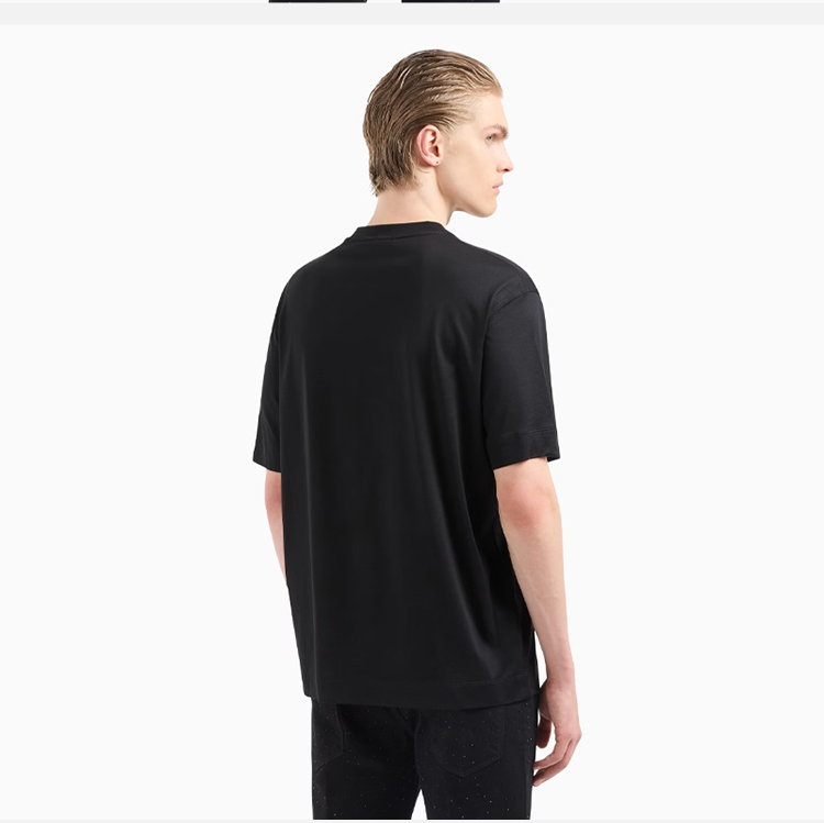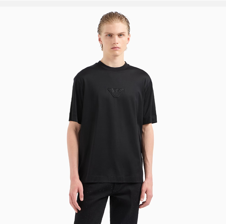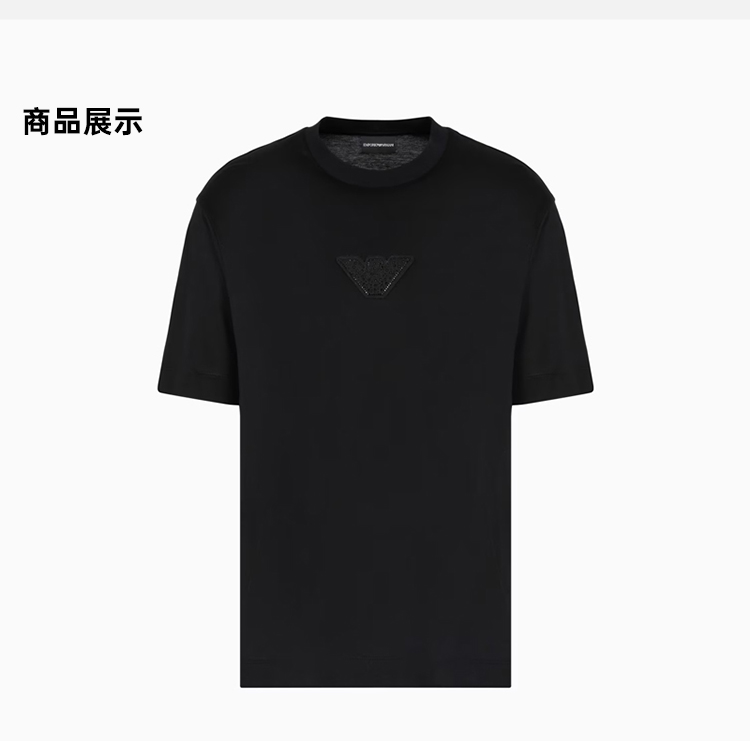 EMPORIO ARMANI 阿玛尼 男士老鹰徽标贴片圆领短袖T恤 黑色 EM001493 AF10017 UC001