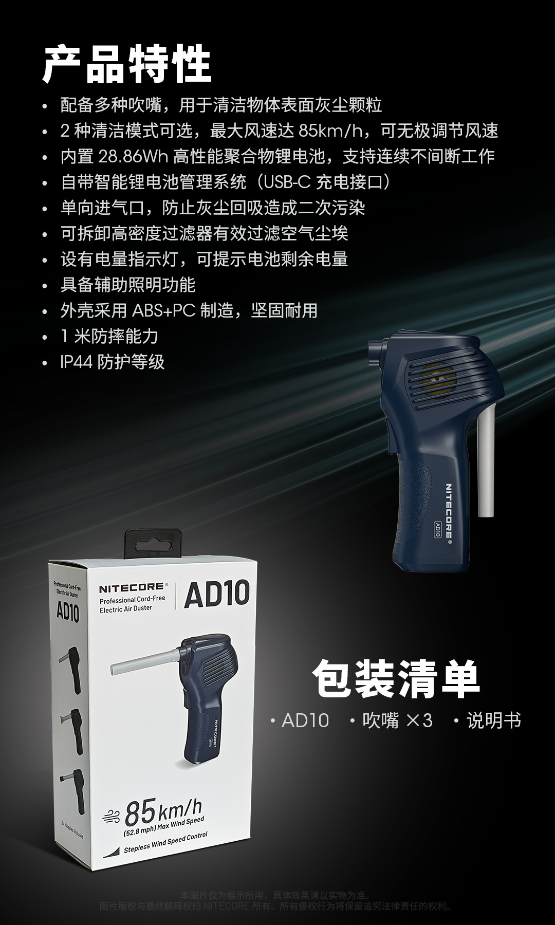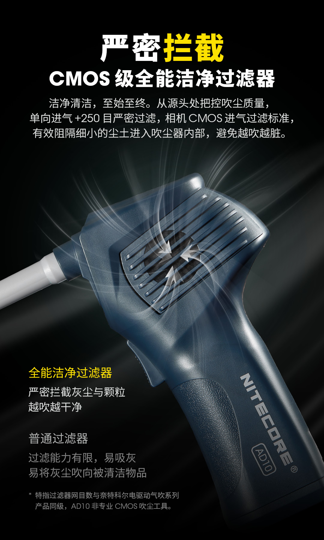 nitecore奈特科尔电动气吹AD10工业吹气宝尘吹器镜头清洁相机吹风机清洁套装镜头气吹涡轮键盘清洁便携式单反清洁