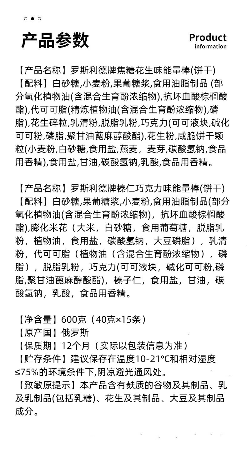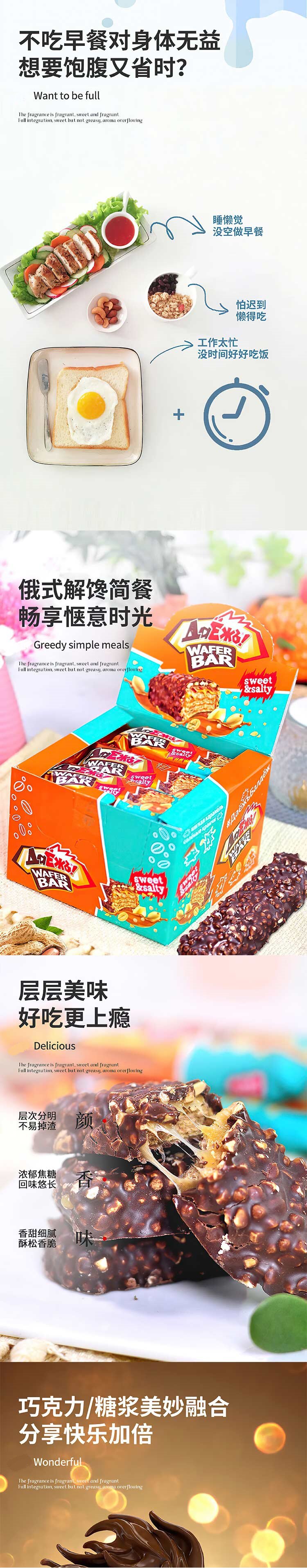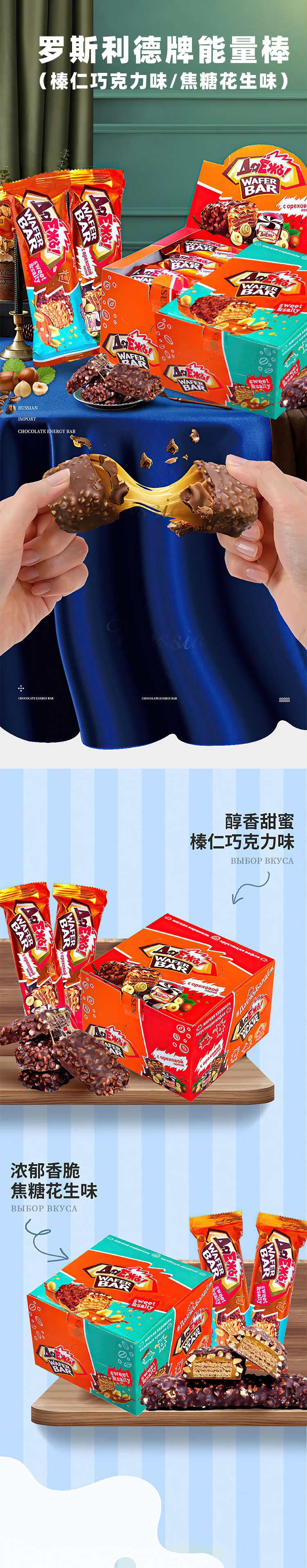 俄罗斯进口罗斯利德牌榛仁巧克力味|焦糖花生味能量棒600g