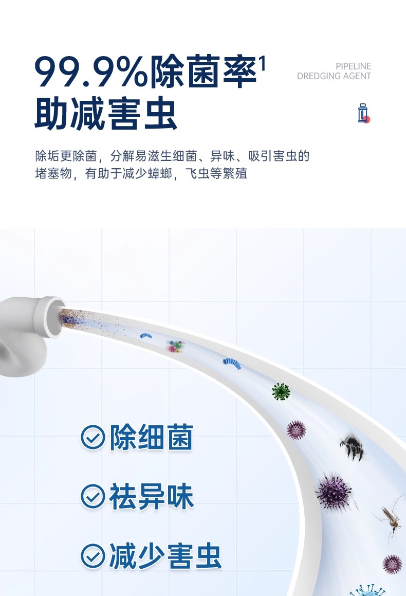 【产品材质】管道疏通剂成分:表面活性剂、氢氧化钠、次氯酸钠、稳定剂