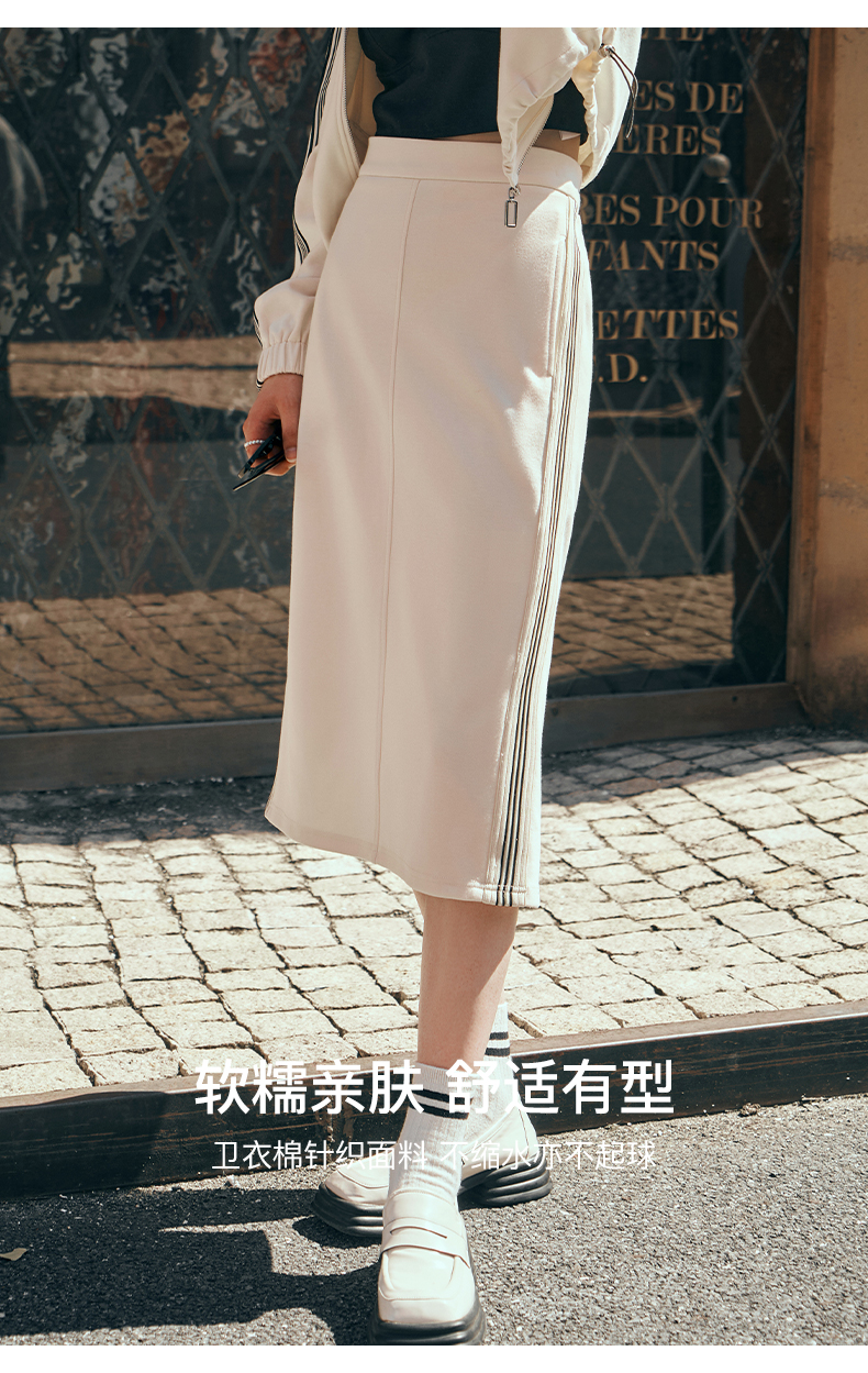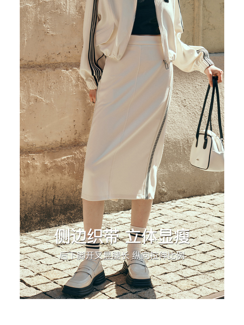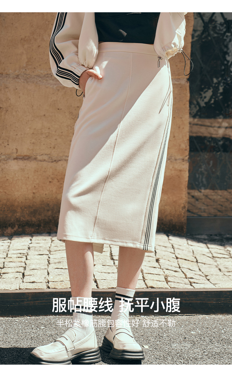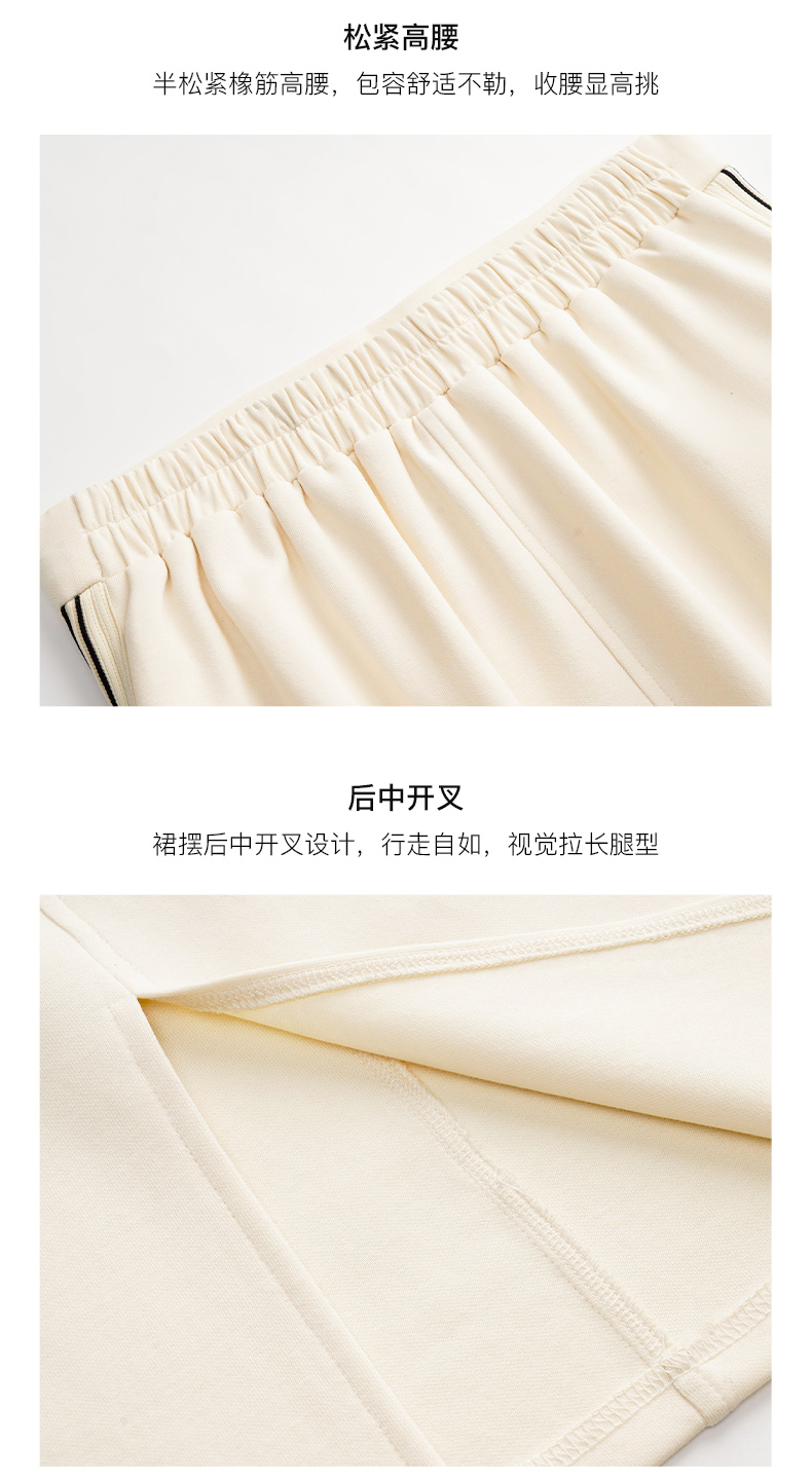 OLrain欧芮儿针织半身裙女初秋2023年新款高腰直筒开叉运动卫衣裙