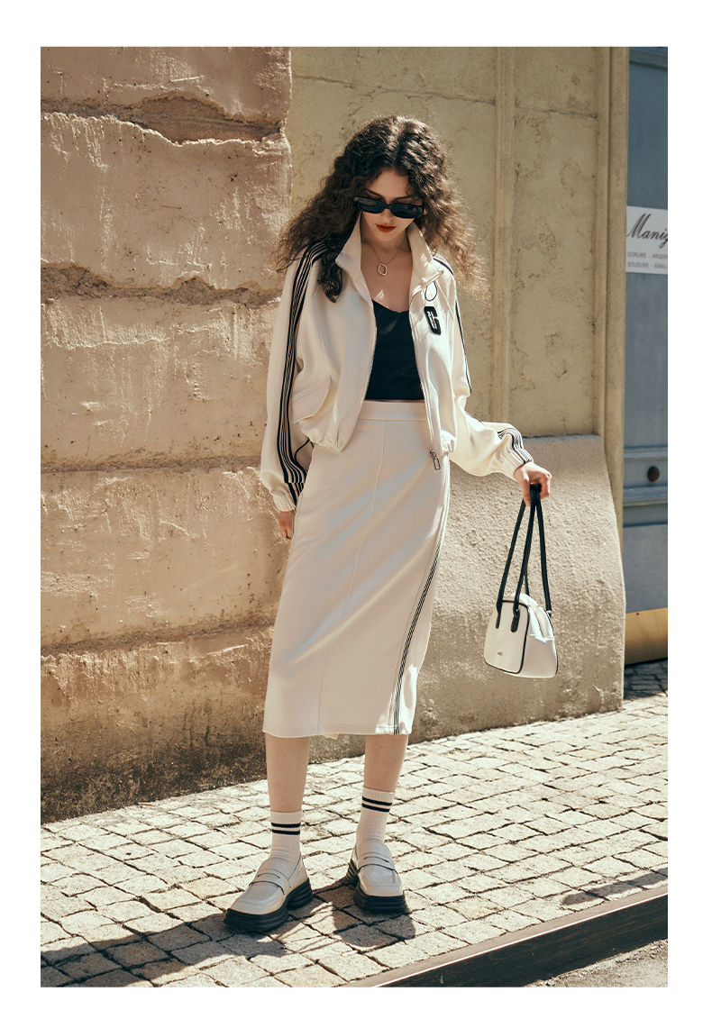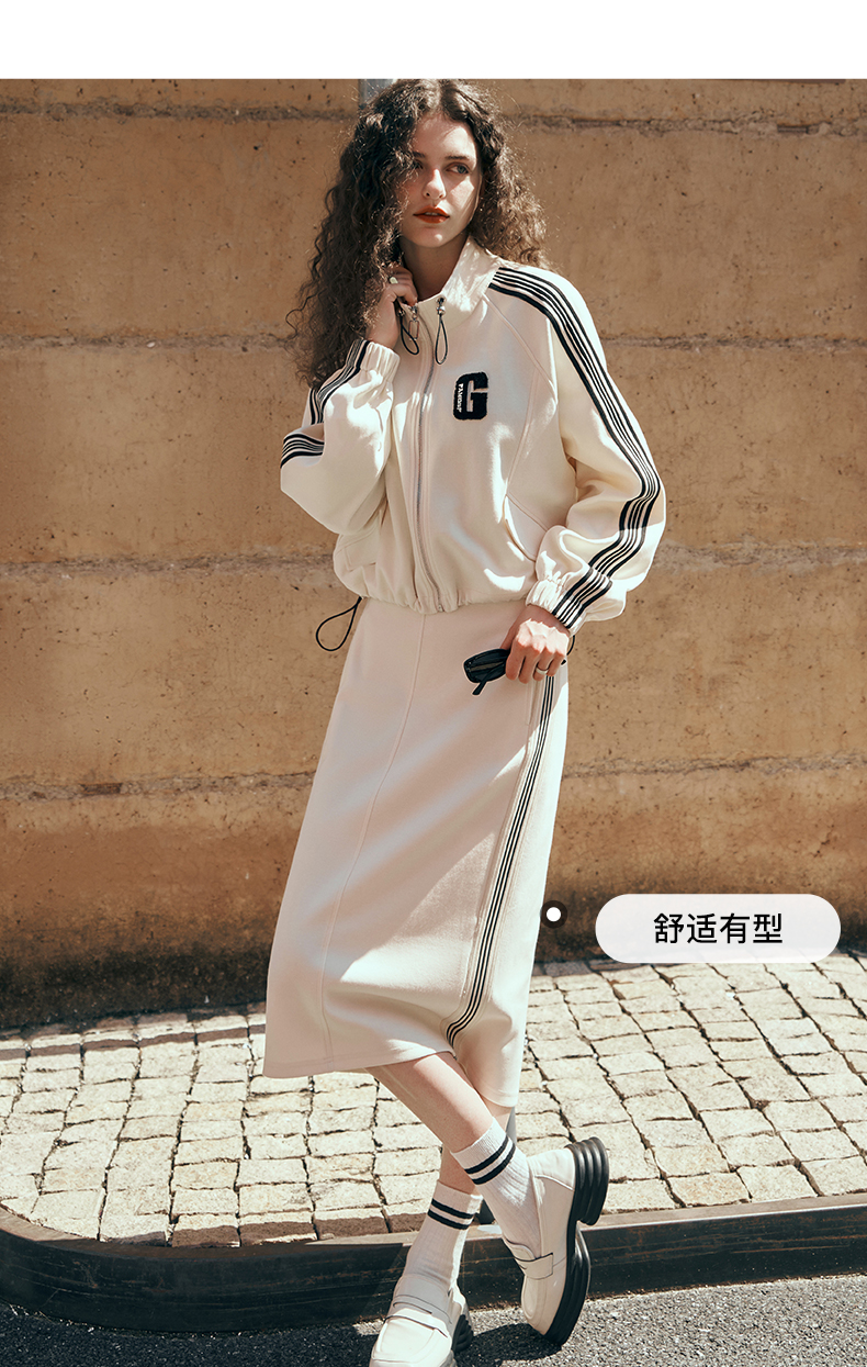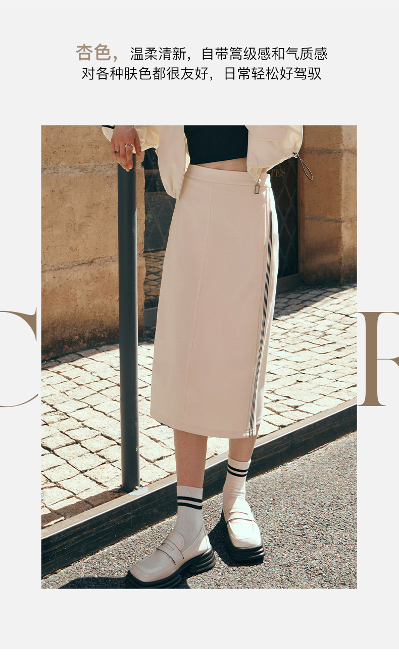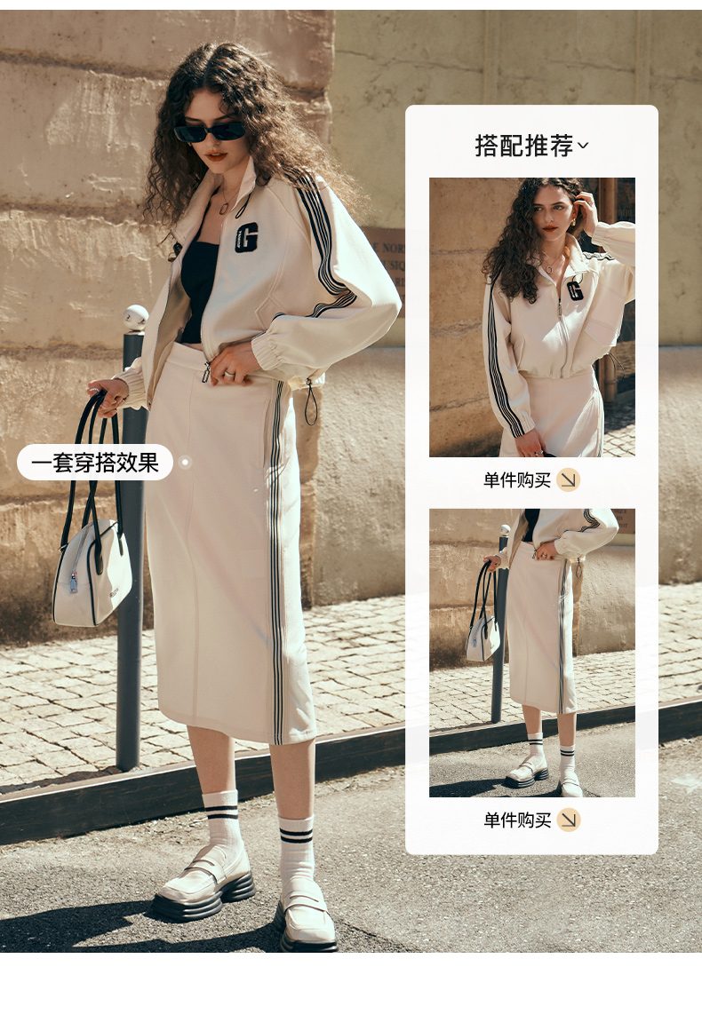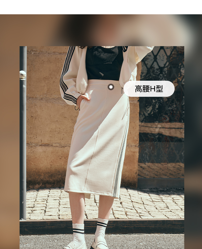 OLrain欧芮儿针织半身裙女初秋2023年新款高腰直筒开叉运动卫衣裙