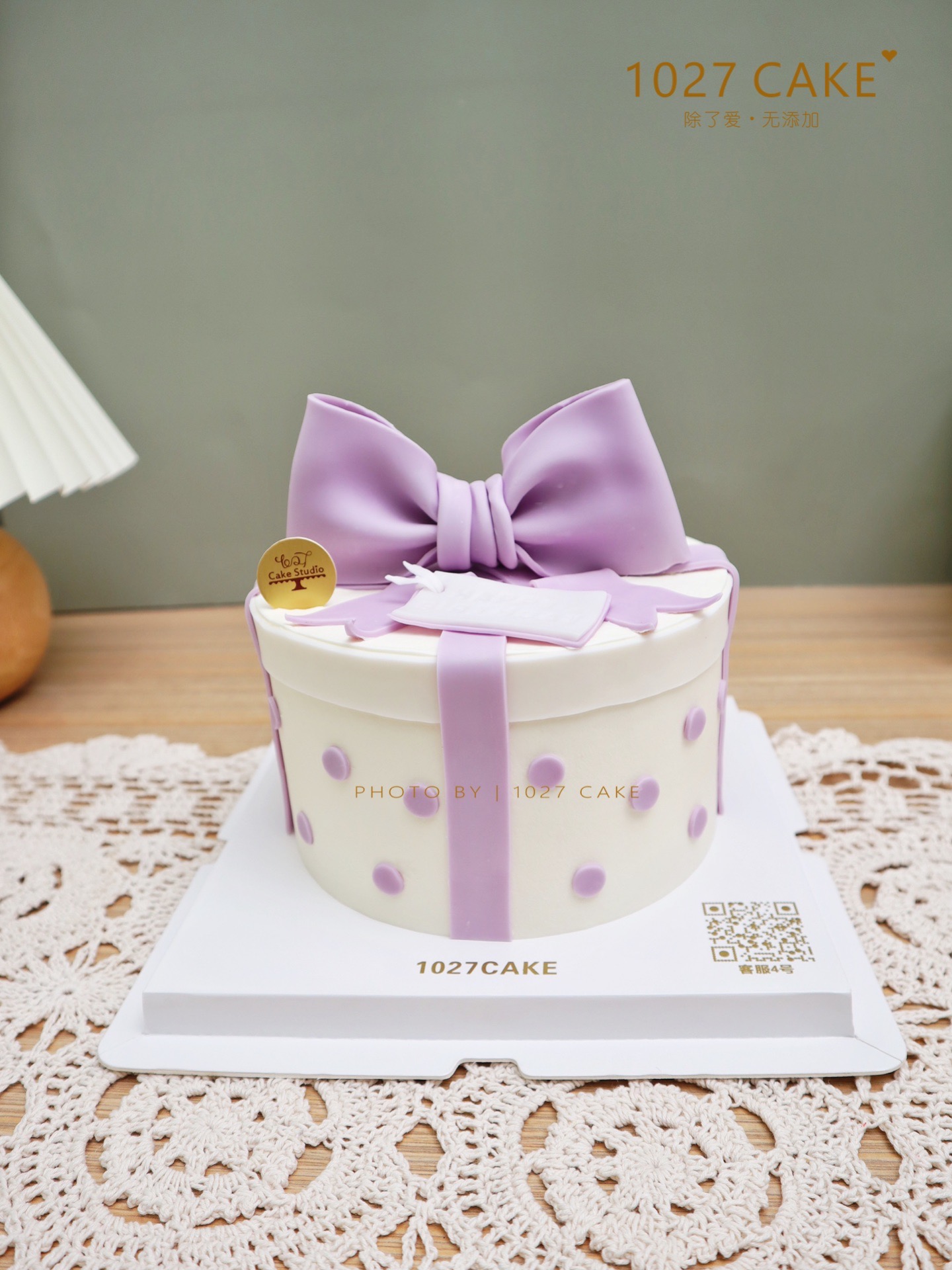 1027CAKE | 紫色系 翻糖蝴蝶结 礼物盒造型蛋糕