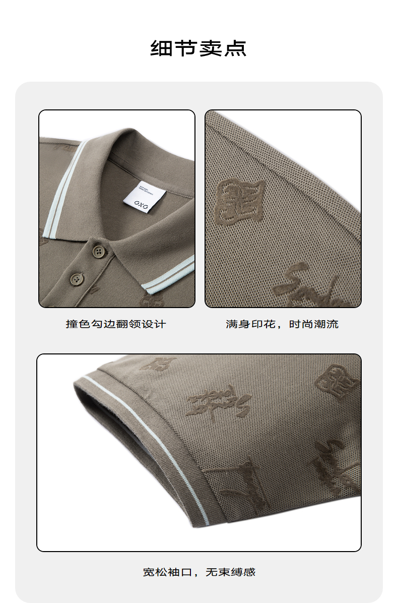 GXG男装 暗纹满印polo短袖男士潮流休闲翻领短袖保罗衫 夏季热卖