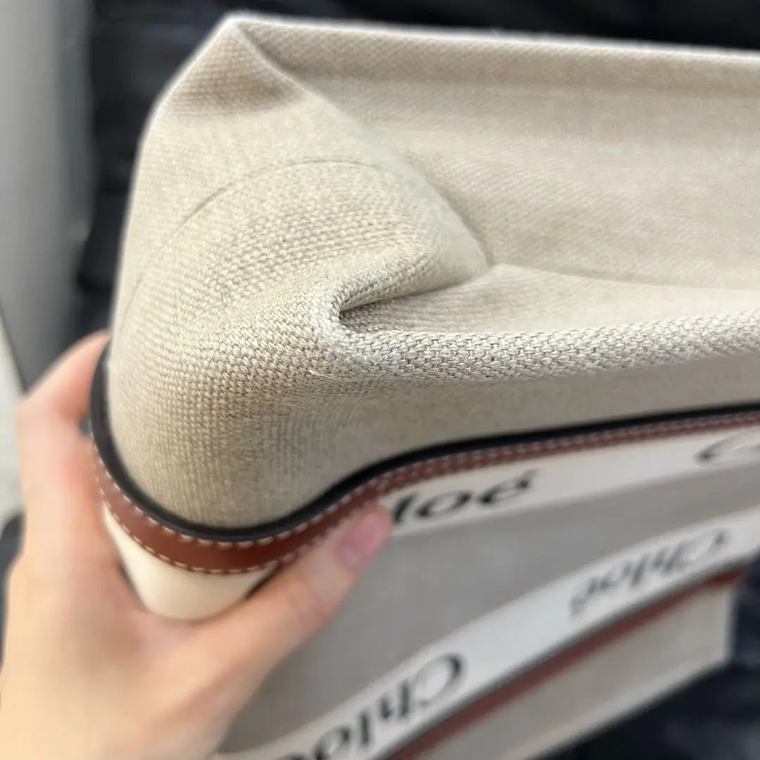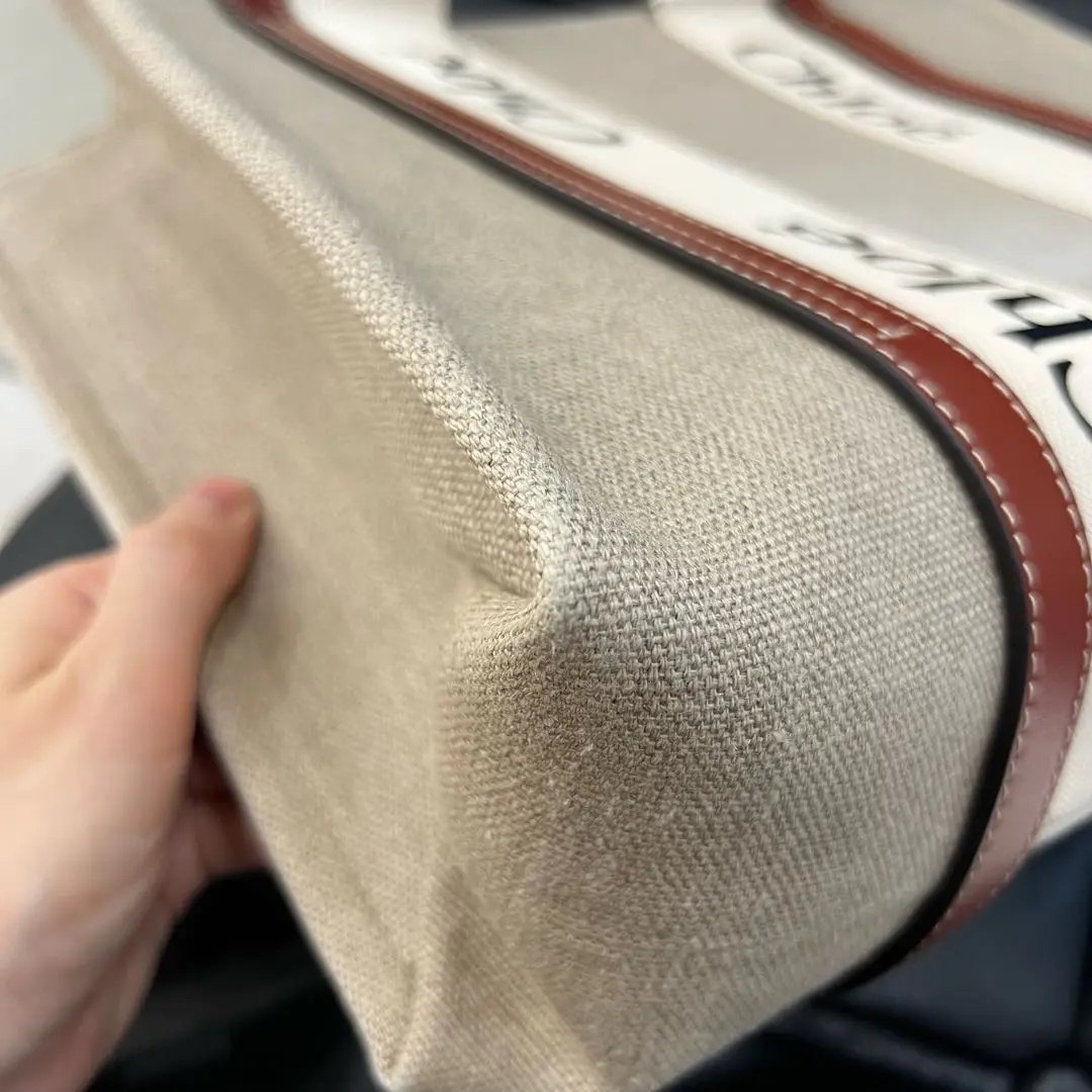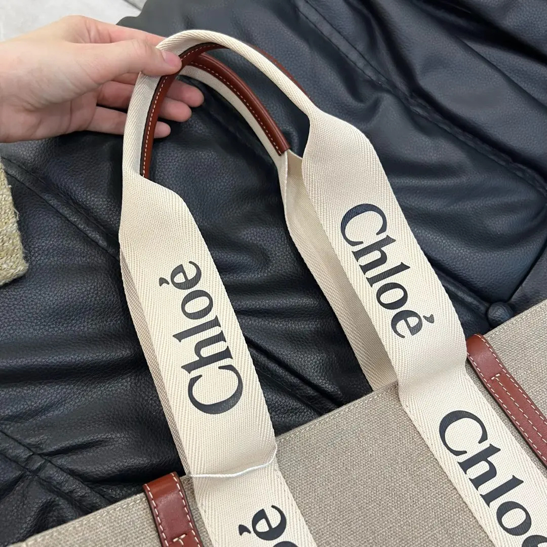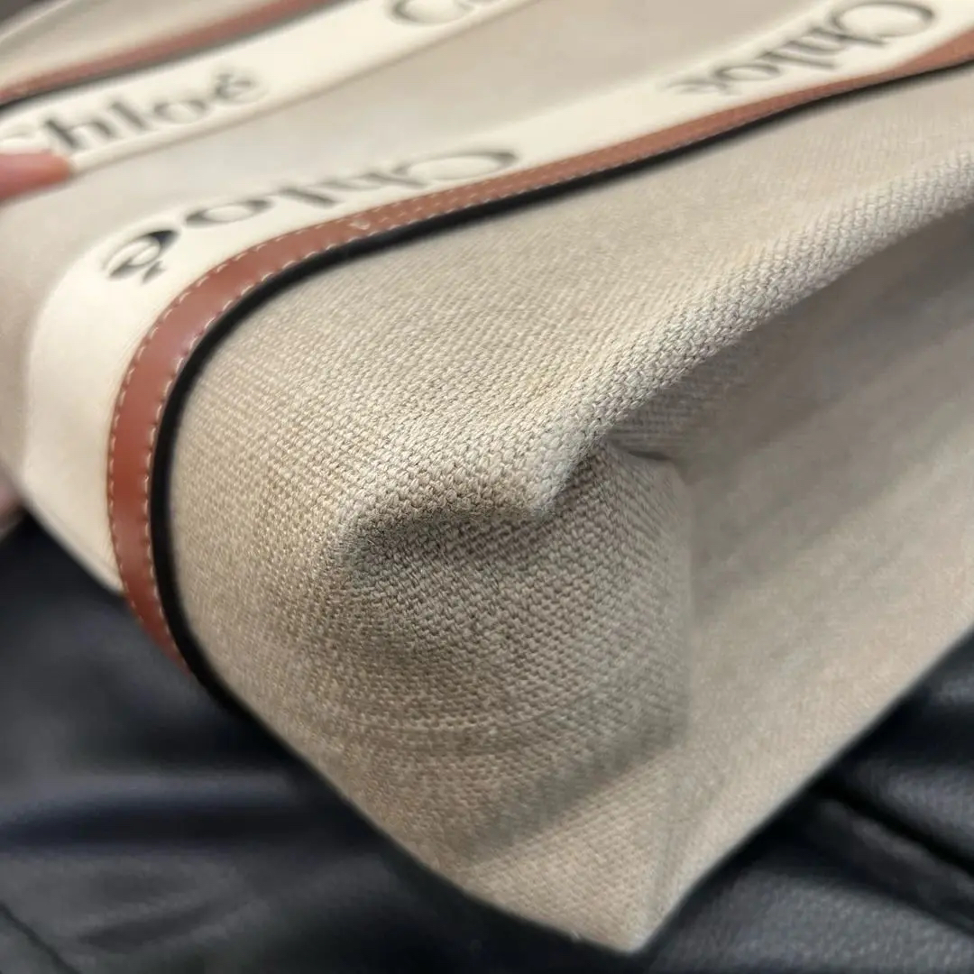 【商品详情】正品二手 Chloe woody 中号 帆布拼皮 棕色 托特包⚡️98新 36x27。嘎嘎新 休闲容量大🥰