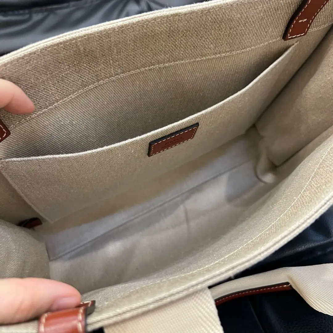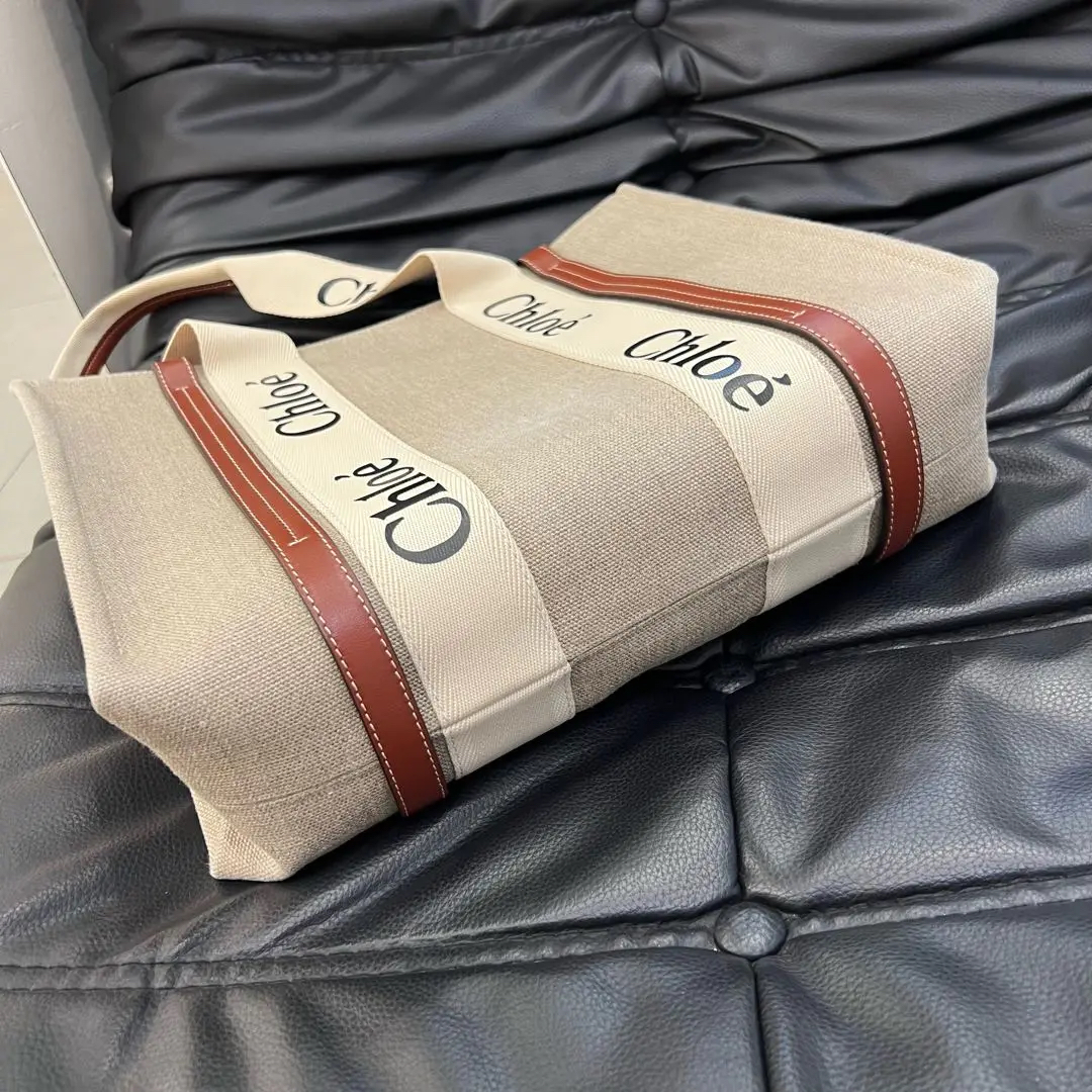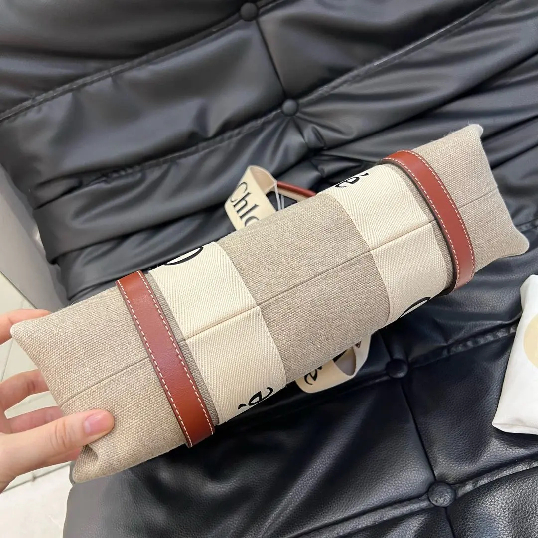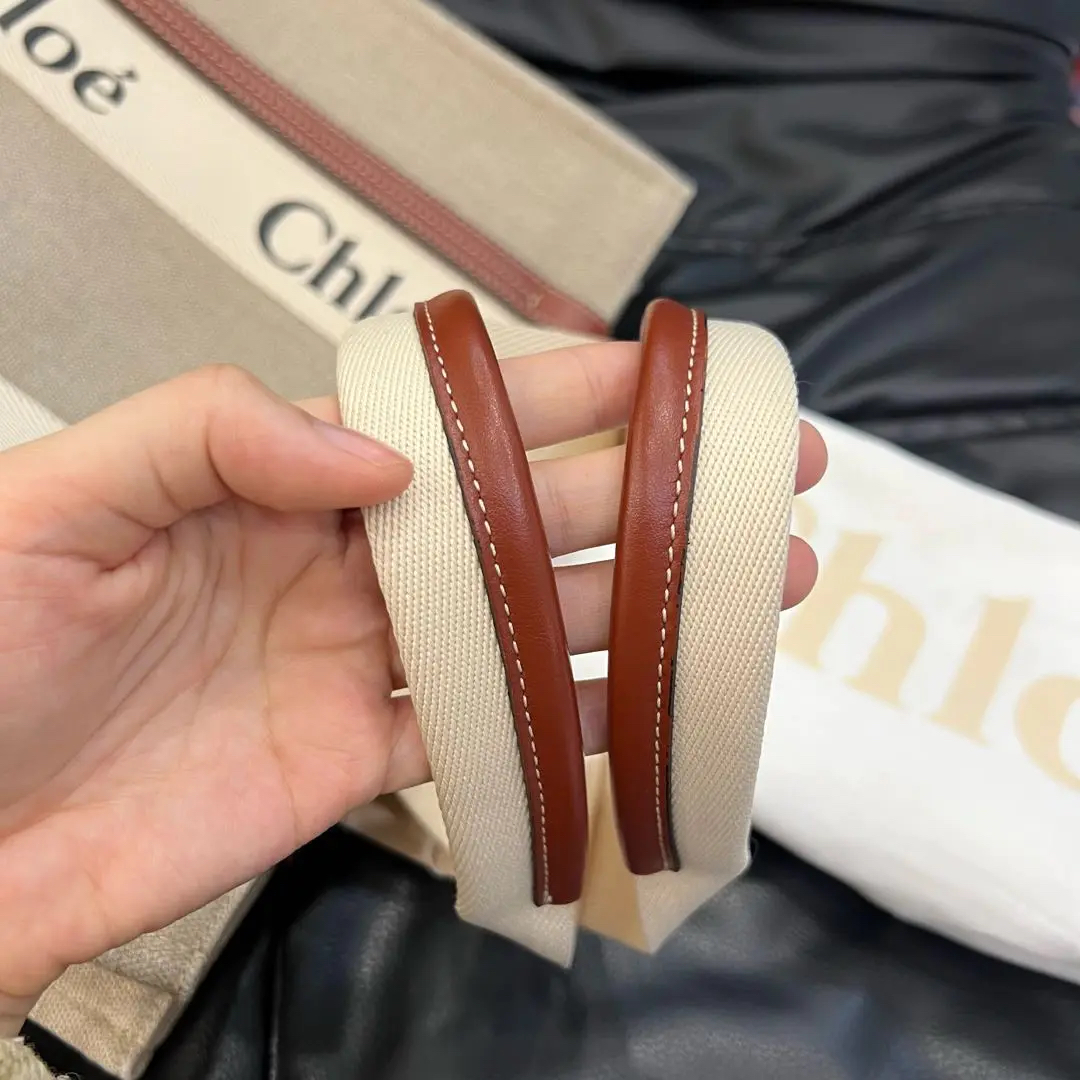【商品详情】正品二手 Chloe woody 中号 帆布拼皮 棕色 托特包⚡️98新 36x27。嘎嘎新 休闲容量大🥰