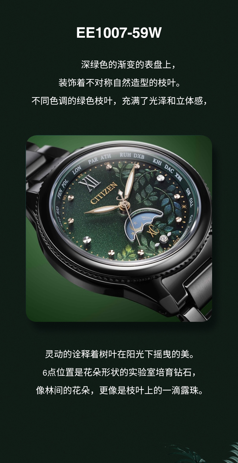 西铁城/CITIZEN光动能电波Xc系列舒博钛日相女表EE1007-59W