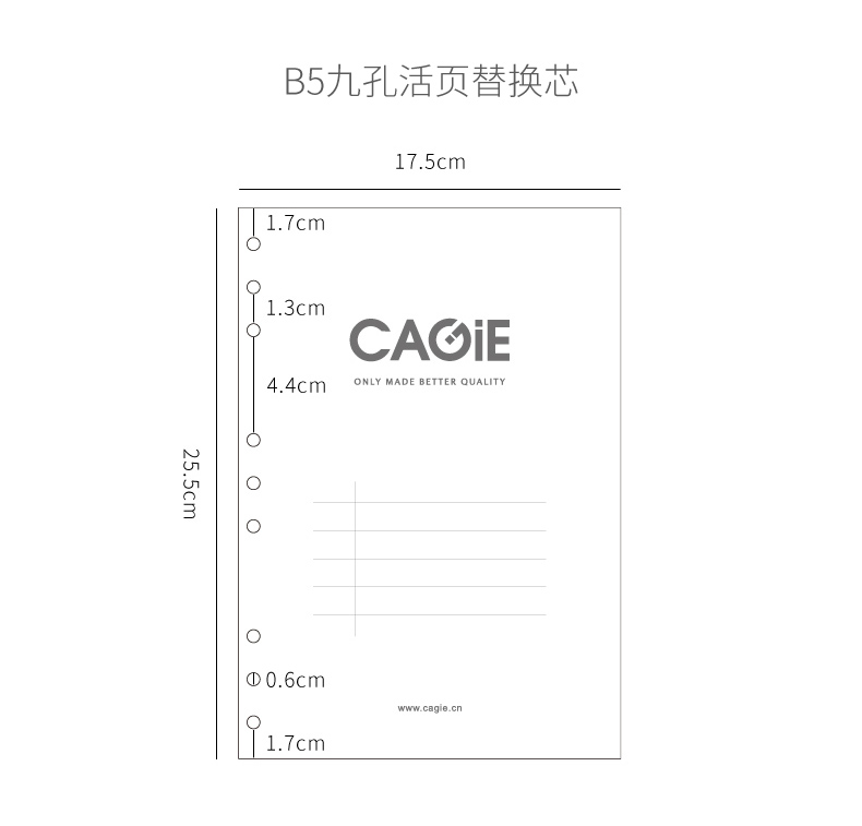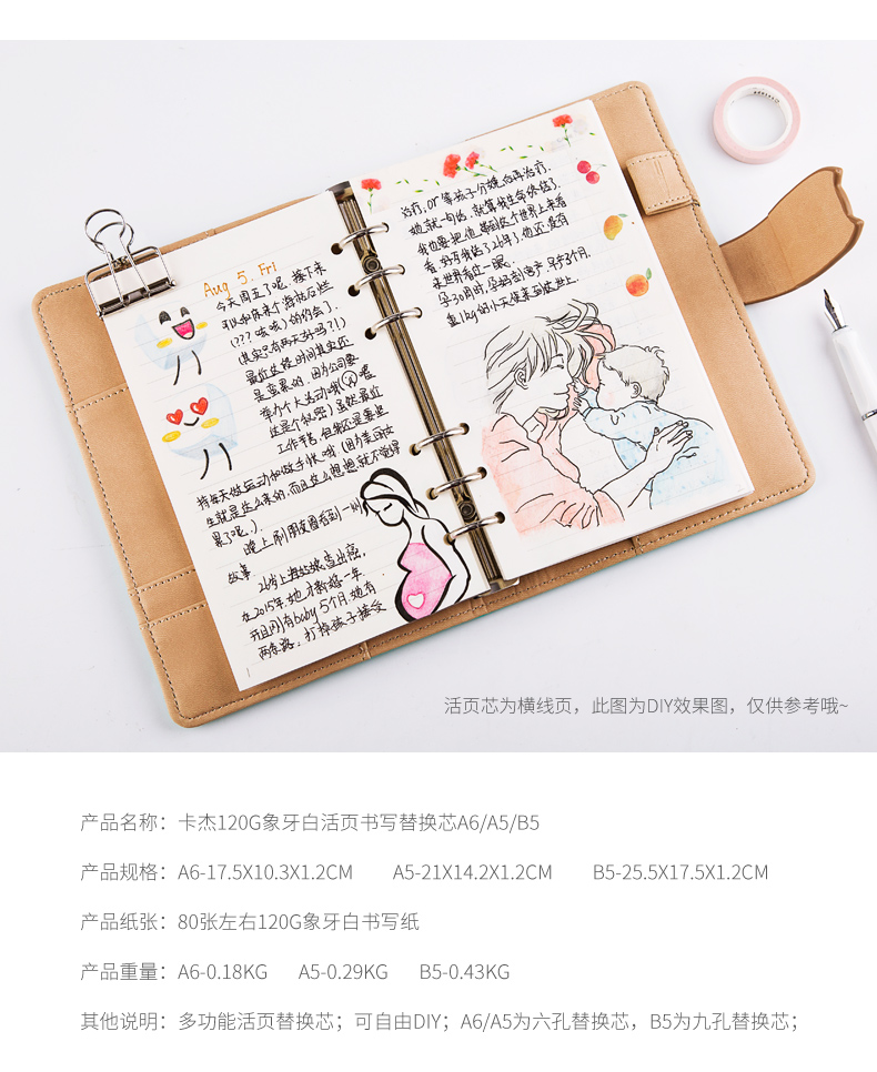 卡杰通用替换芯活页纸多功能6孔横线