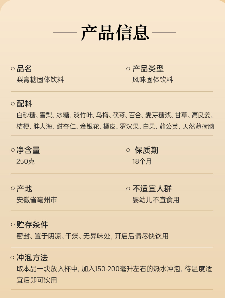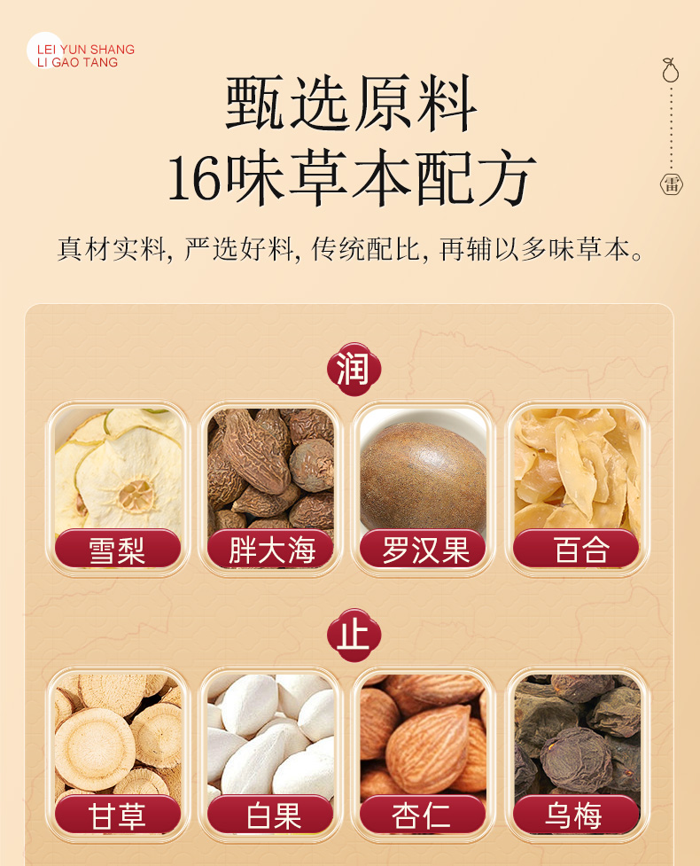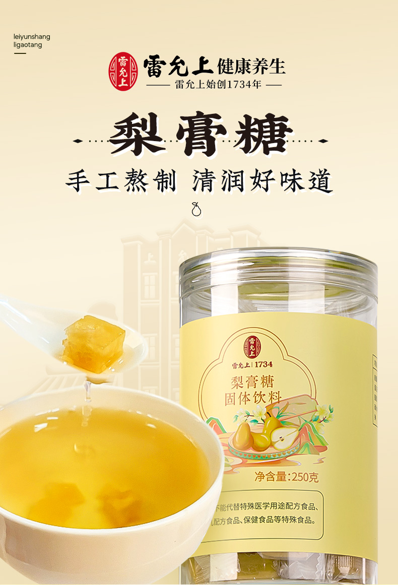 雷允上 梨糖膏固体饮料250g 手工熬制 16味草本配方 清甜可口 独立包装 48小时发货