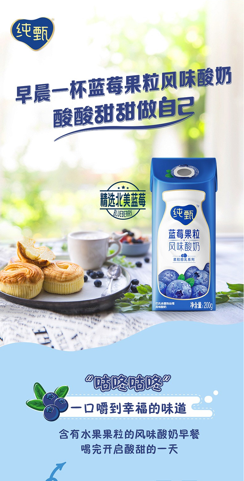 纯甄蓝莓果粒风味酸奶康美笑脸包200g×10包