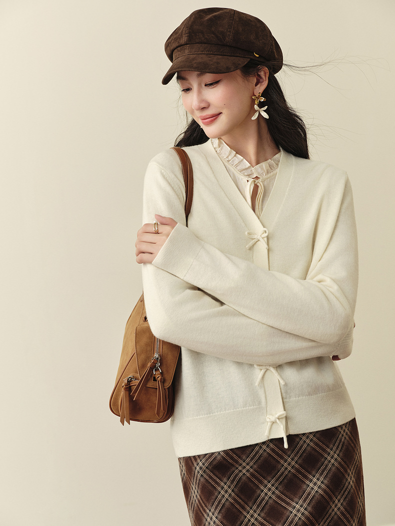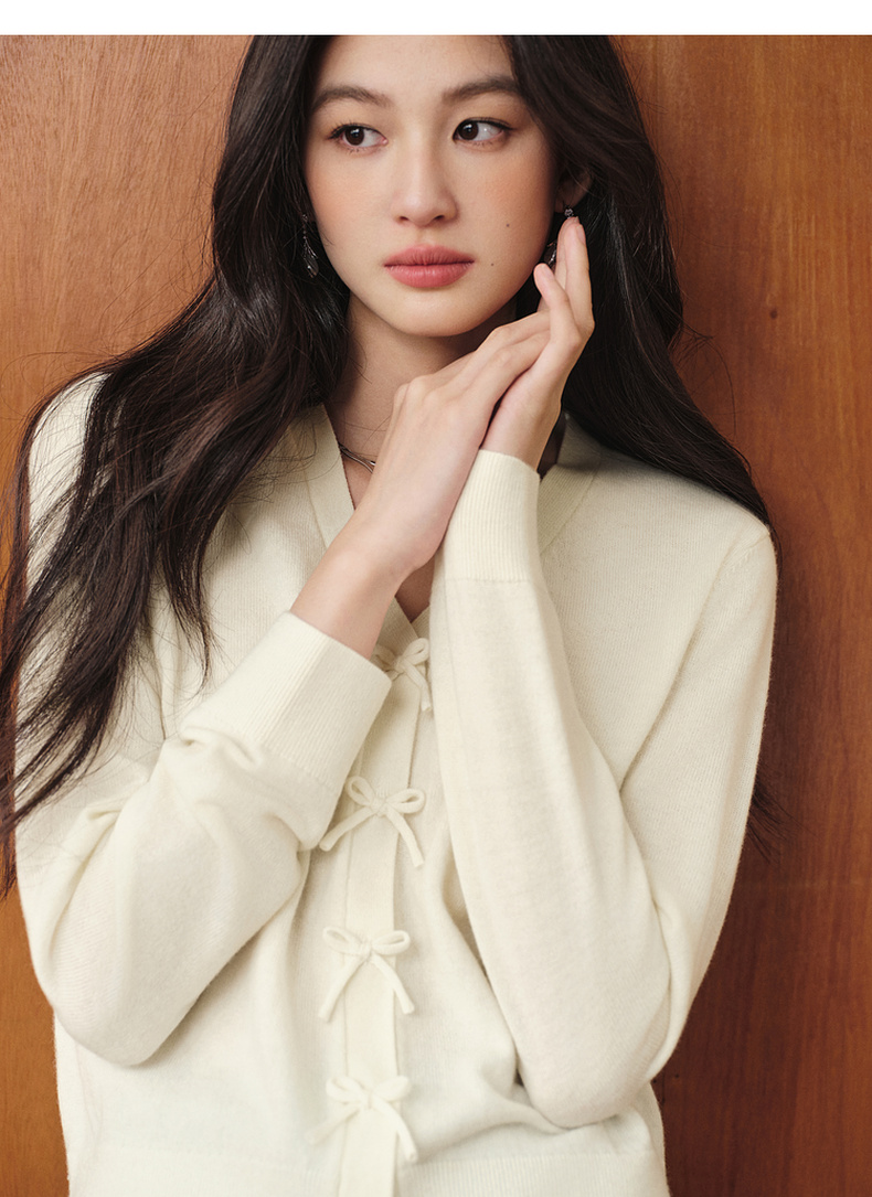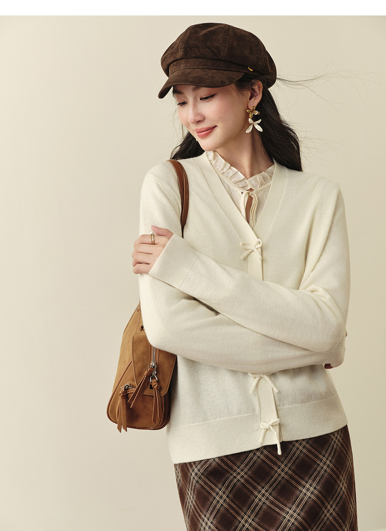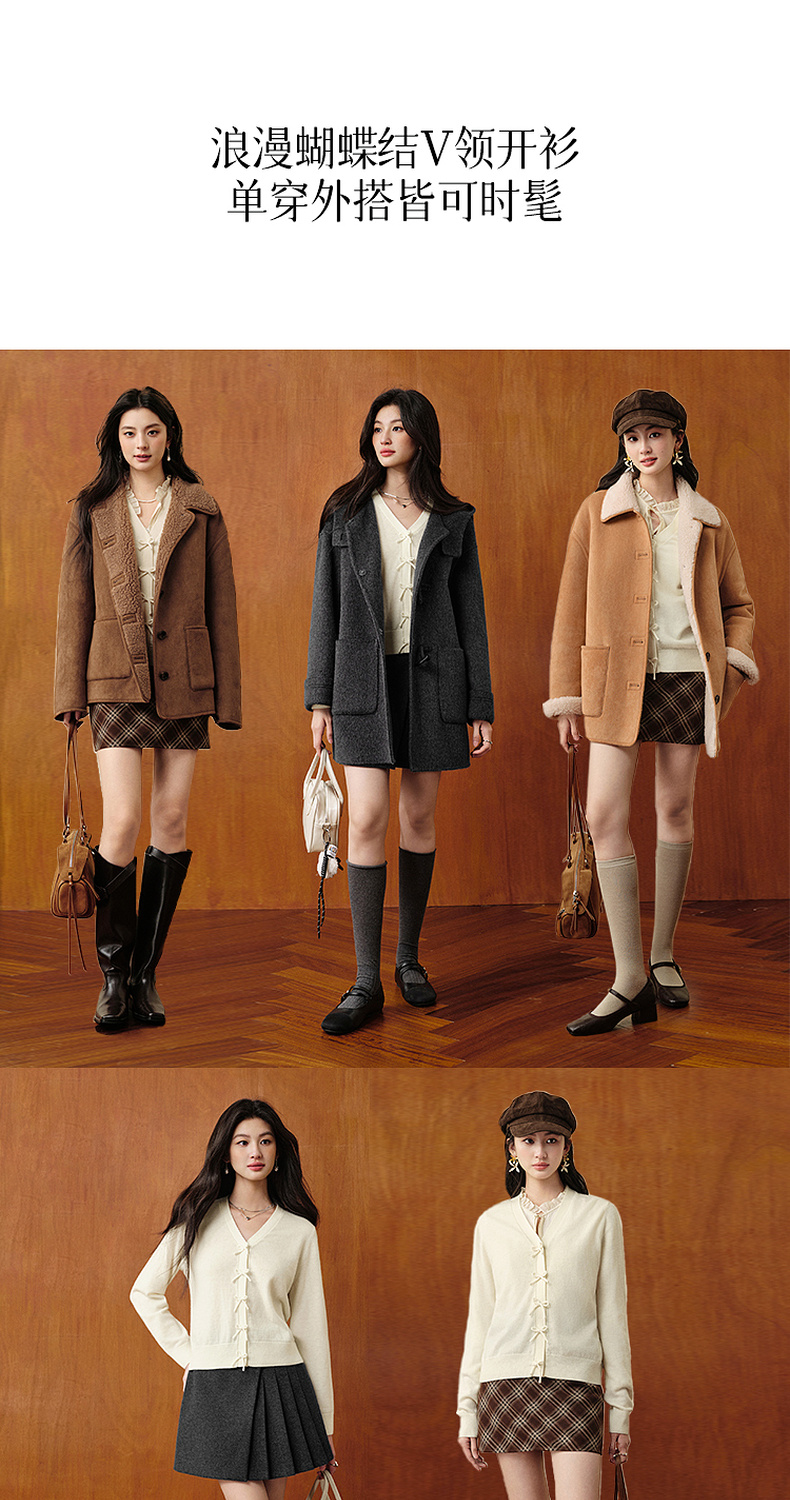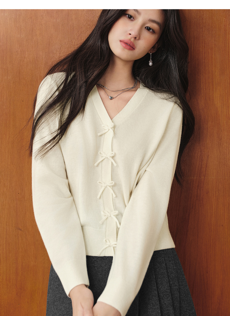 【严选】【孟子义同款】诗凡黎蝴蝶结扣针织开衫25秋新款温柔长袖短上衣7G9133011