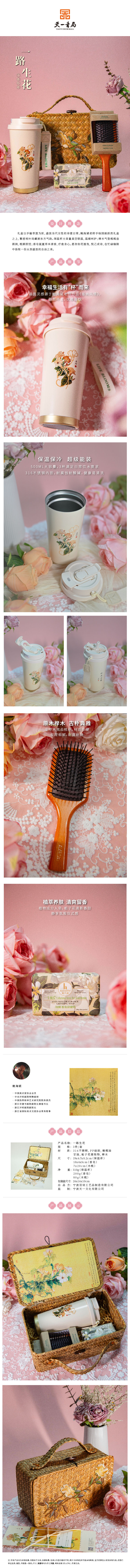 羽诗制造出品 一路生花保温杯气垫梳香皂文创礼盒