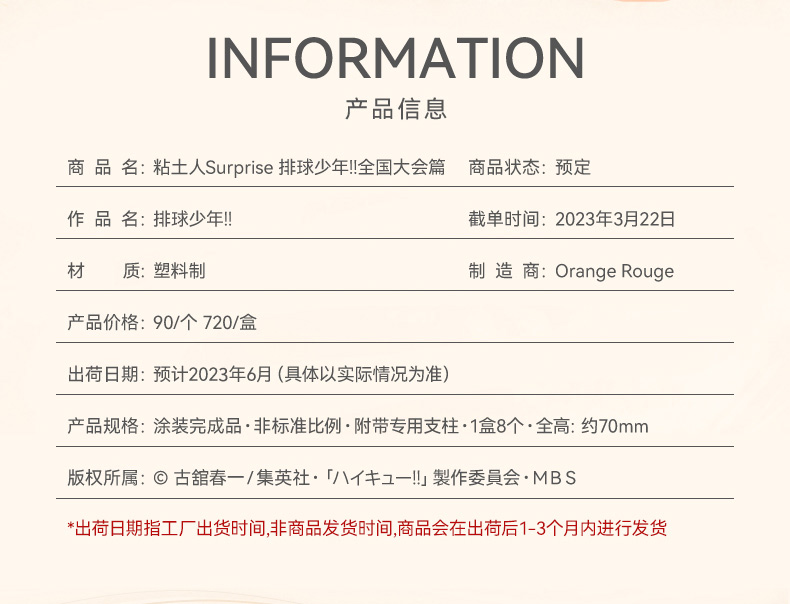 【GSC现货】粘土人Surprise 排球少年!!全国大会篇