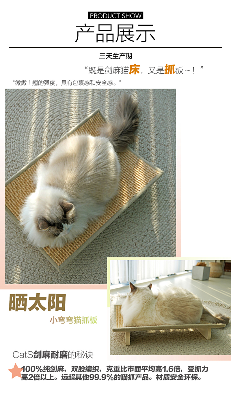 CatS猫家具小弯弯 猫抓板猫沙发 大号天然剑麻猫床猫玩具 包邮