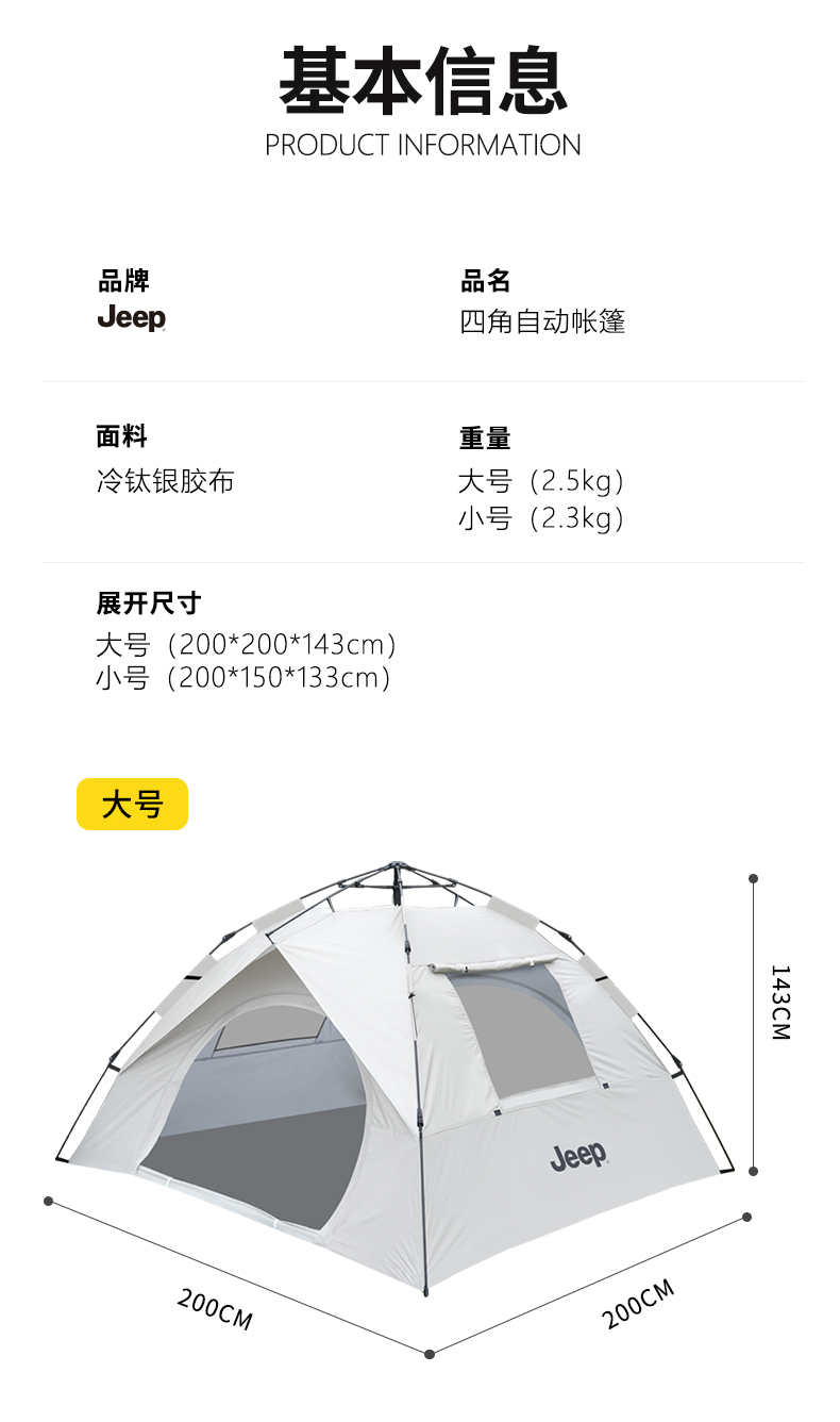 129元起 JEEP吉普户外露营全自动帐篷折叠便携式CQ31【偏远地区不发货】
