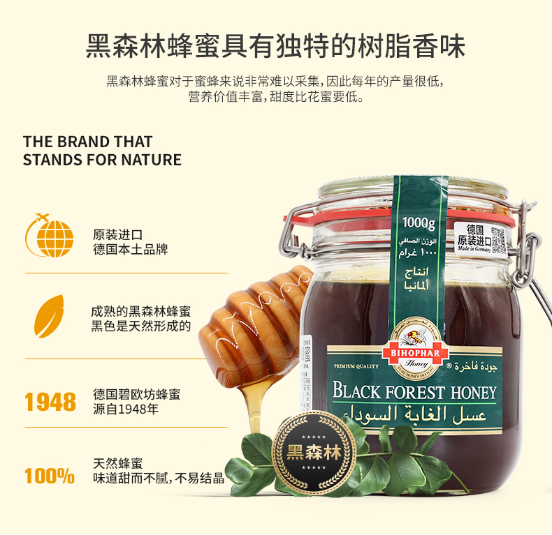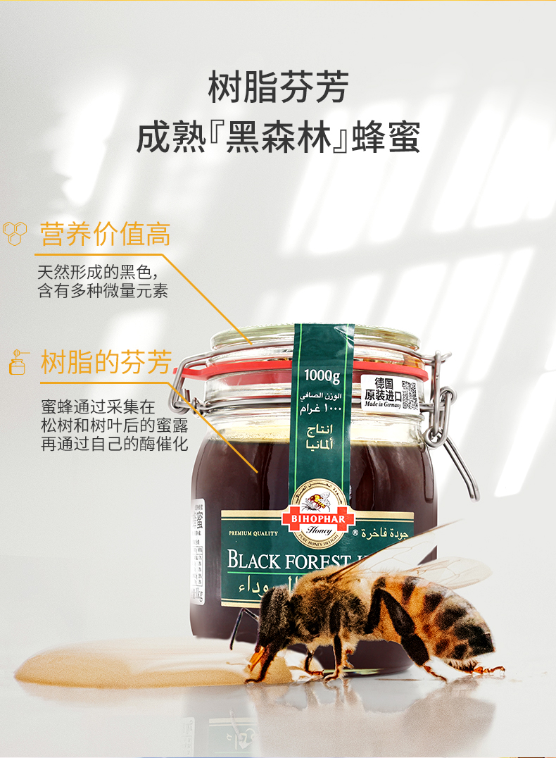 德国碧欧坊黑森林蜜1000g/500g 天然黑森林松树蜂蜜 树脂香味 031429/032701