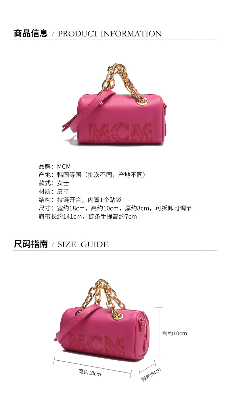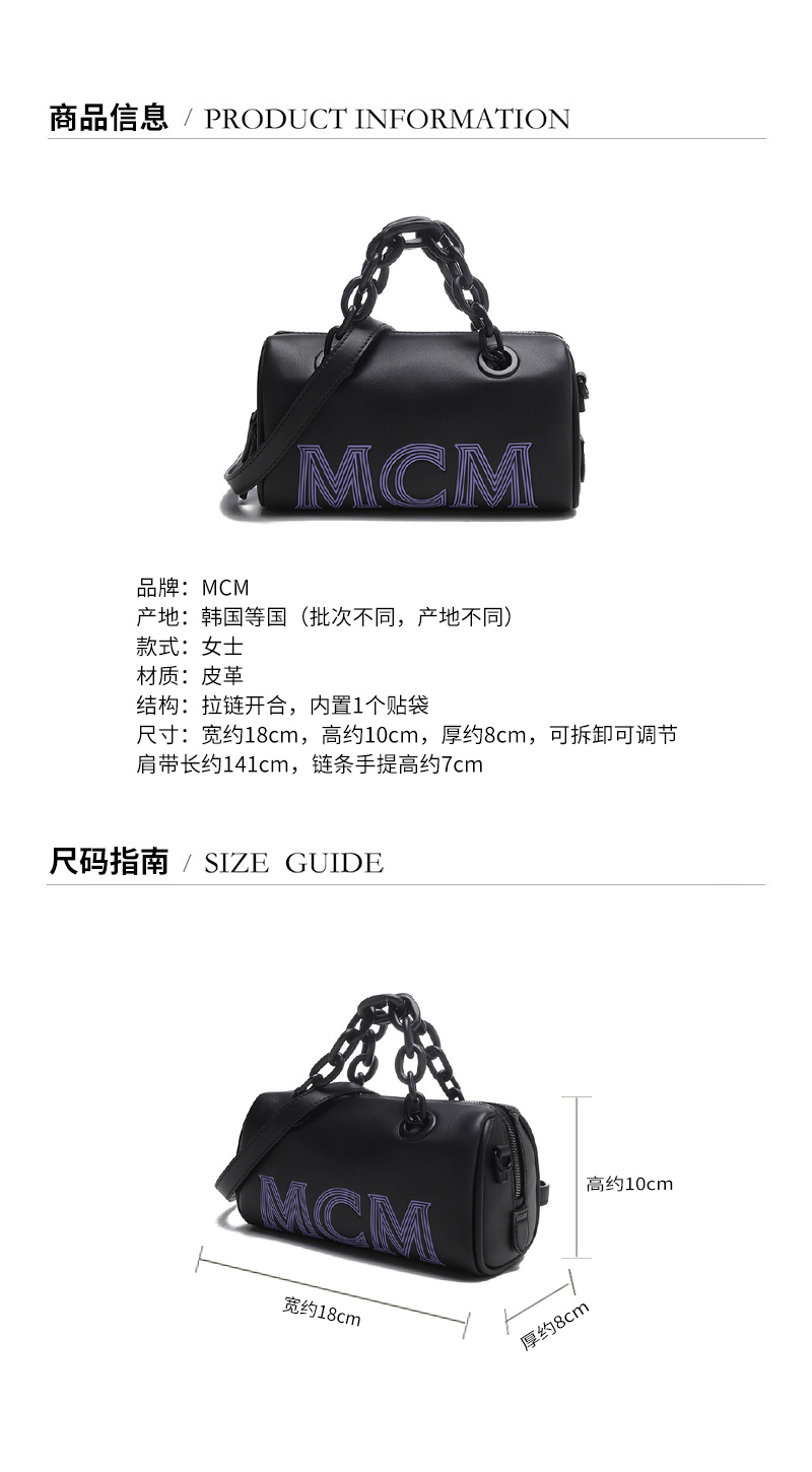 MCM【22春夏新款】女士皮革链条手提单肩斜挎包波士顿包压花LOGO迷你款 MWBCSSX01