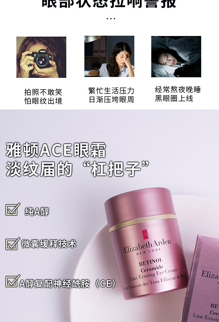 KO眼纹!伊丽莎白雅顿智囊ACE眼霜15ml 视黄醇A醇眼霜时空焕活紧致