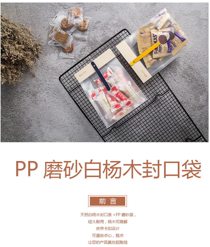 包装 | PP磨砂白杨木封口袋 雪花酥包装袋牛轧糖零食袋子一次性打包袋木卡头自立透明袋食品袋
