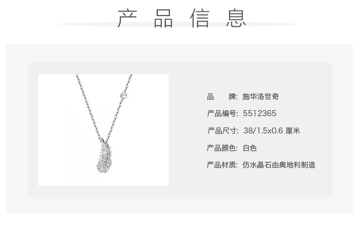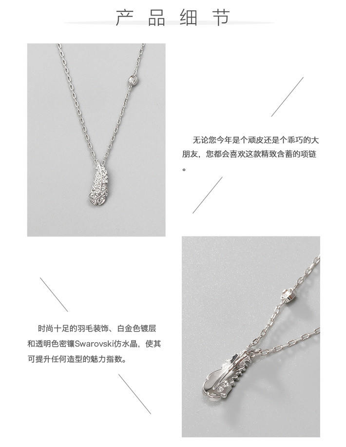 【香港直邮】SWAROVSKI Mini白色羽毛链坠,镀白金色5512365