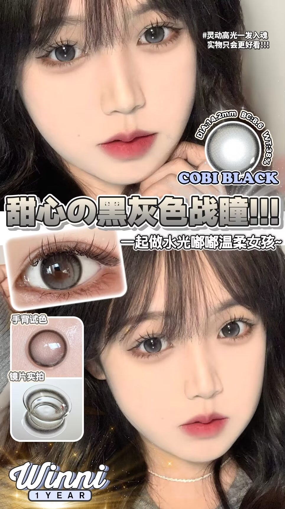 「高端美瞳」富婆之选 WINNI 甜心黑灰 cobi black 14.2 年抛 含硅水凝胶