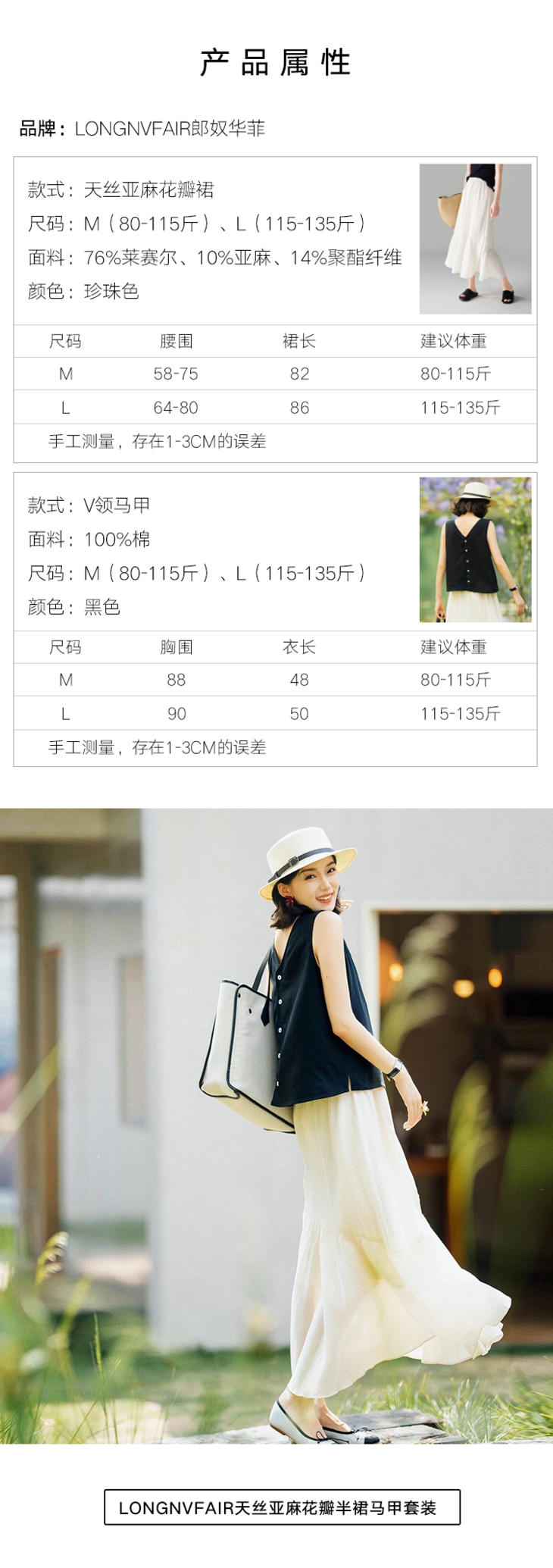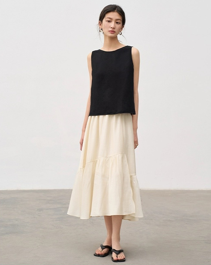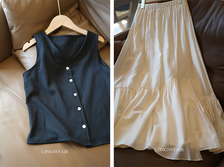 【回头率直线飙升套装】天丝亚麻花瓣半裙马甲套装