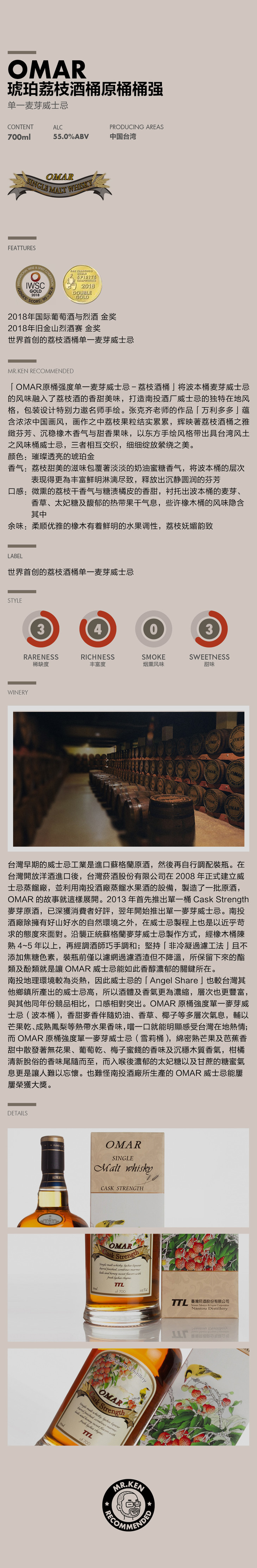 琥珀(OMAR)荔枝酒桶原桶桶强 单一麦芽威士忌