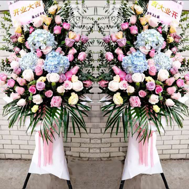 花材: 绣球,玫瑰,散尾叶,三 脚架花篮(3065)