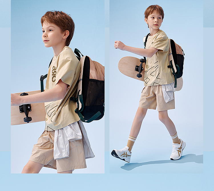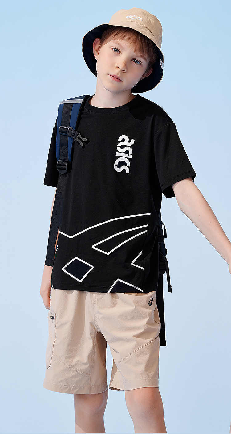 ASICS亚瑟士童装2025年夏季新款吸湿抗菌宽松舒适弹力运动短袖T恤
