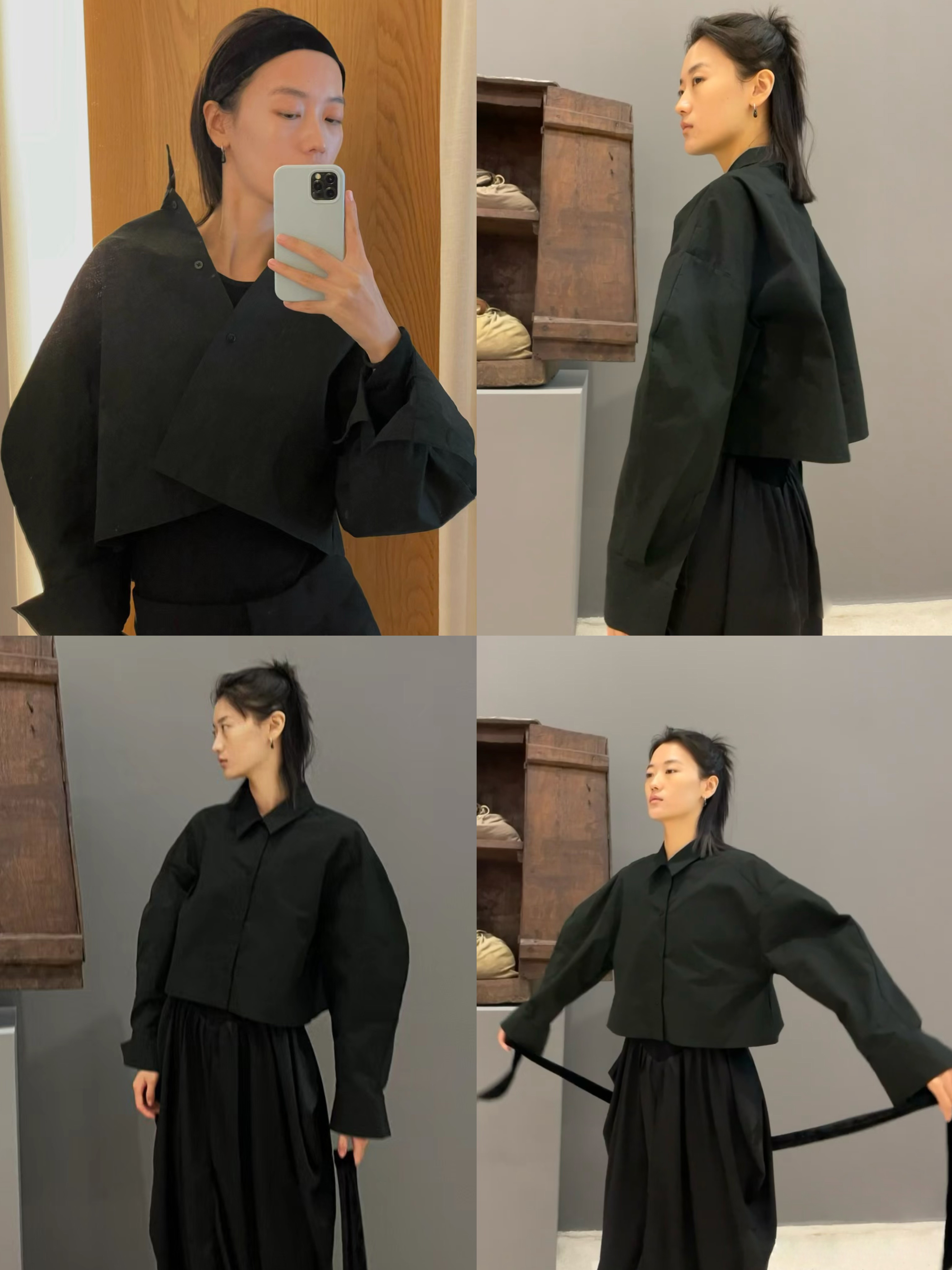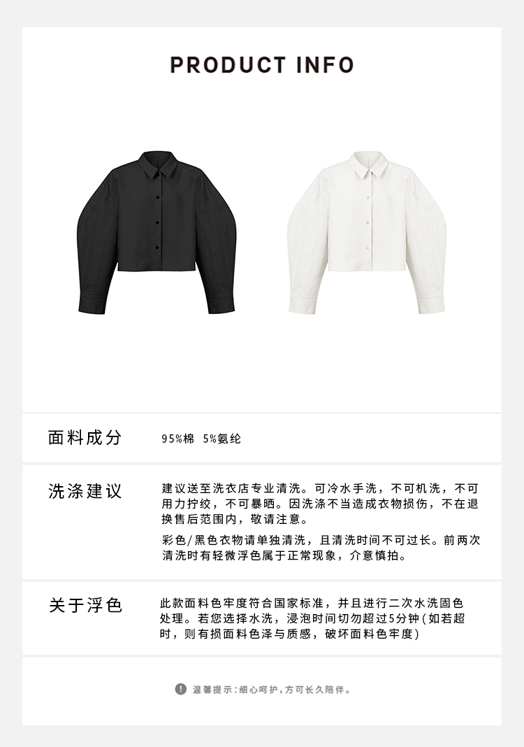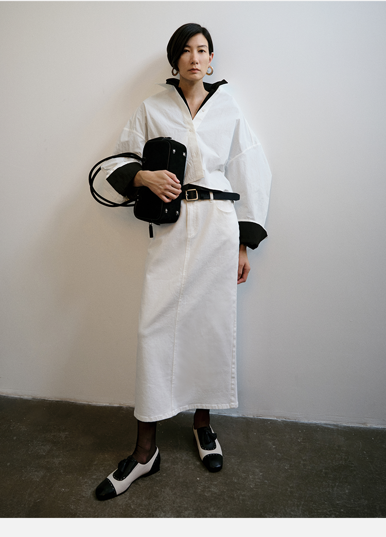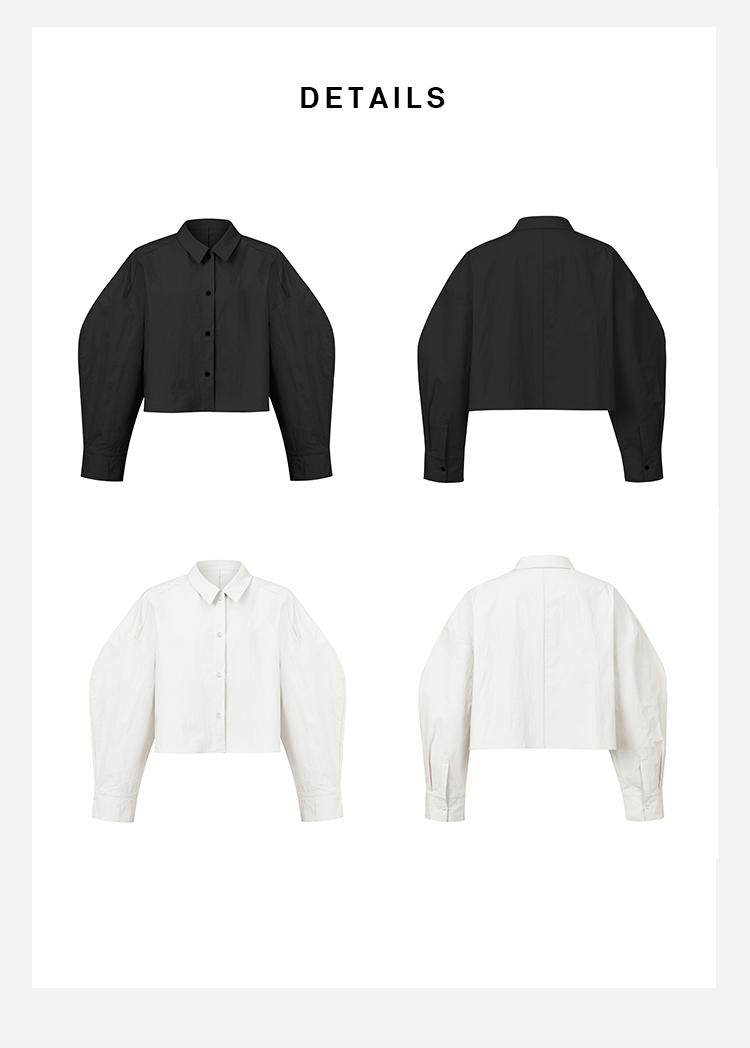 HIDEMI 特殊工艺纸感微浮雕艺术面料极简大廓形袖衬衫 都市白/黑色