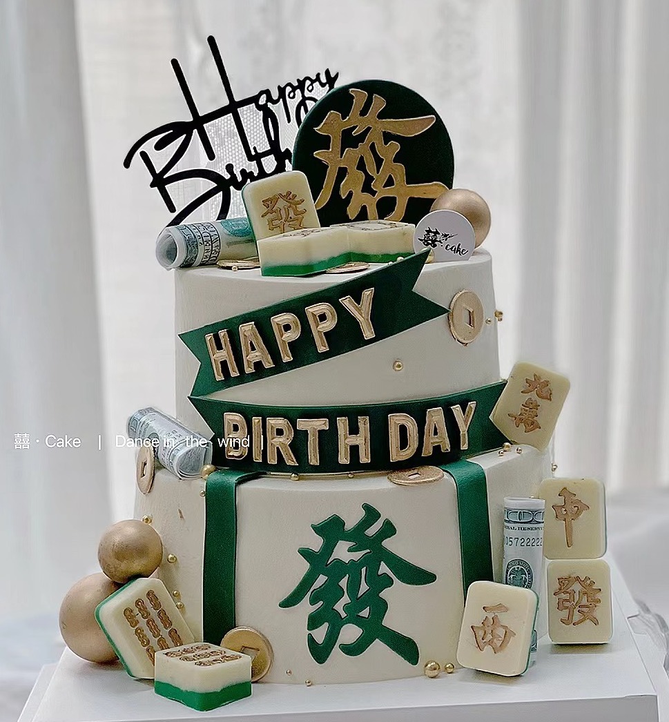 【臻品系列】---双层加高半翻糖【發發發】需提前一天预定,发财蛋糕