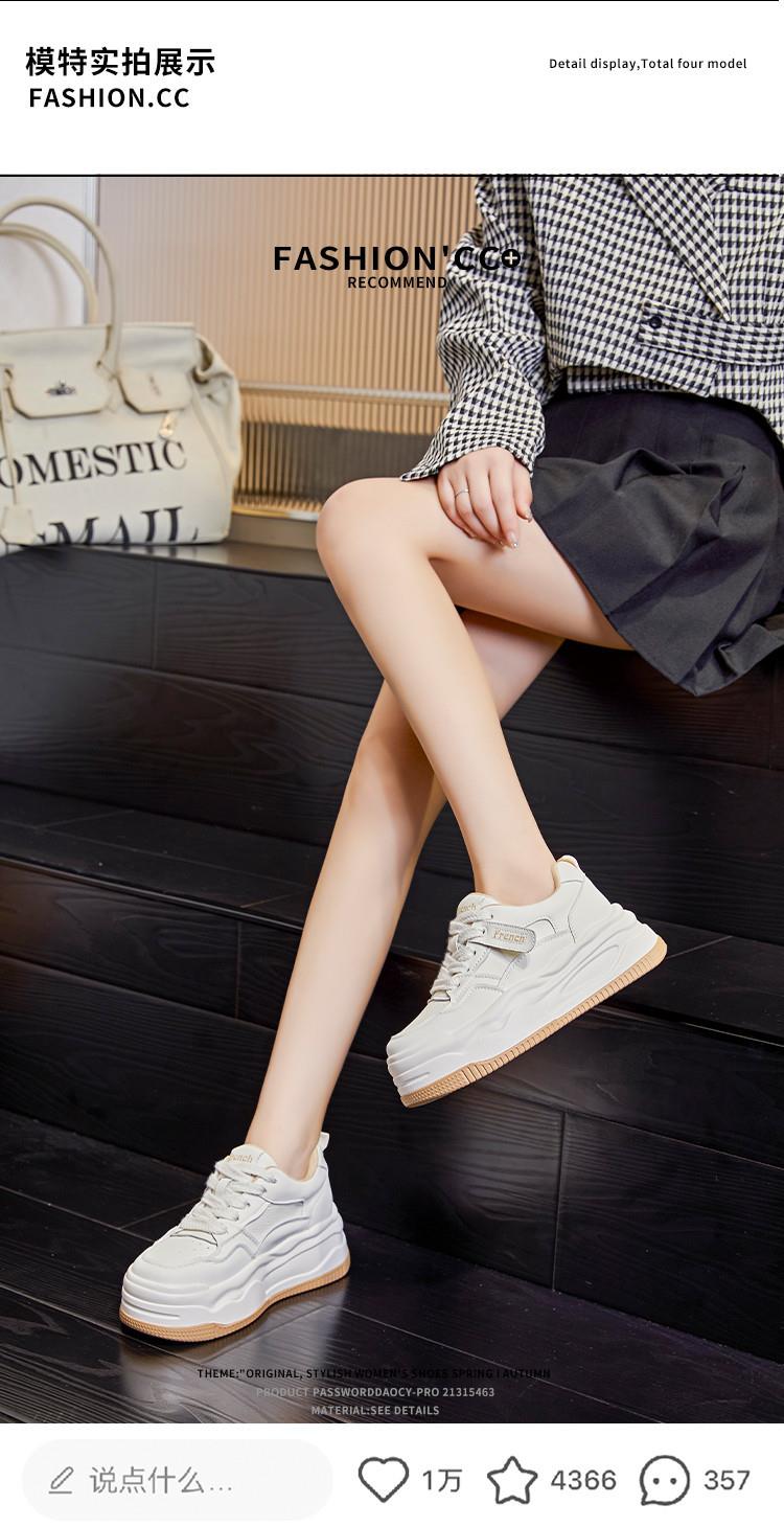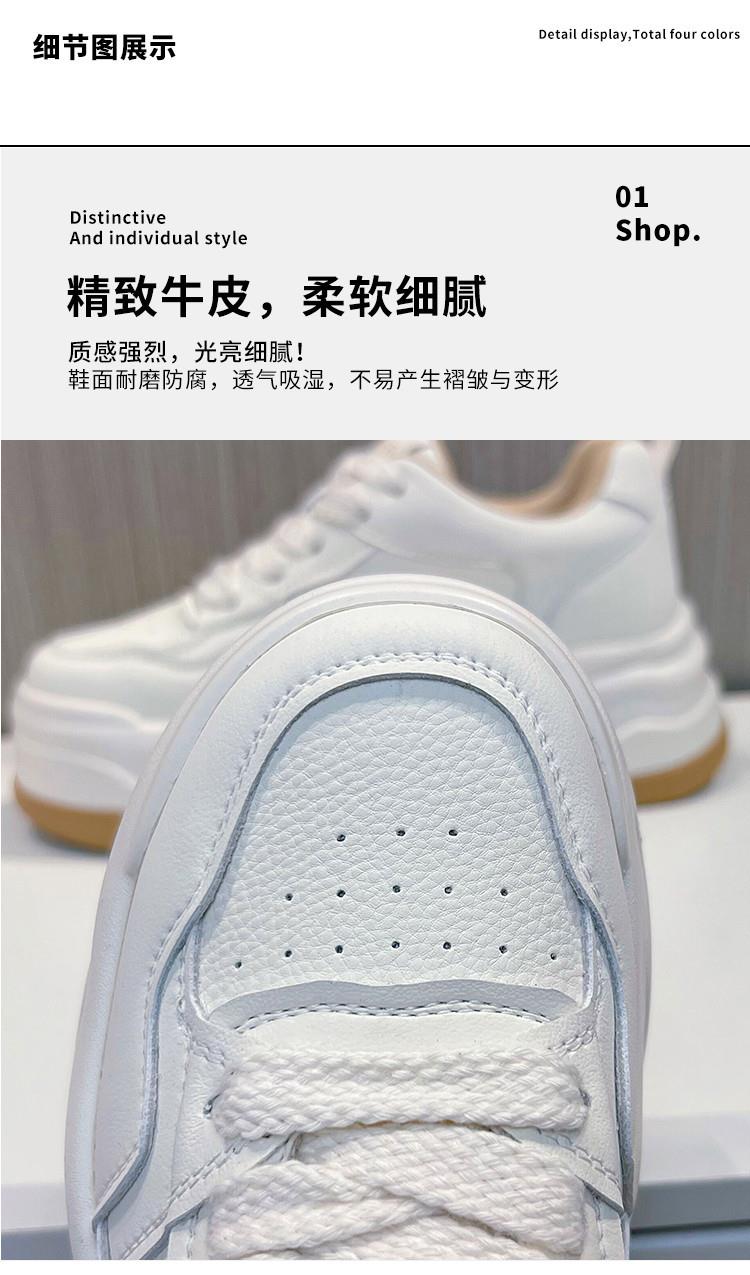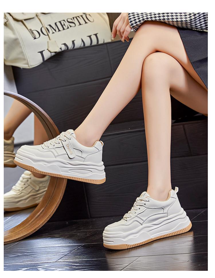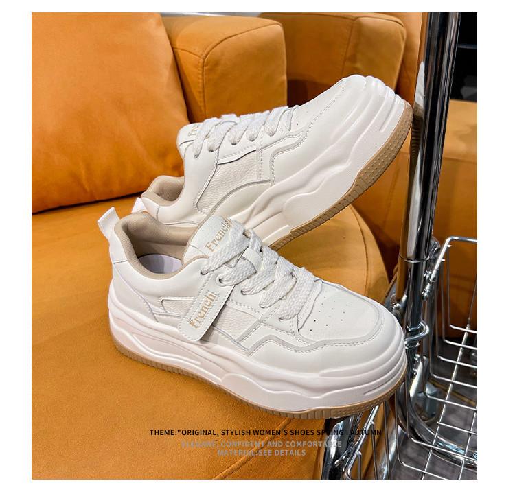 真皮小白鞋女2024春季新款女式休闲单鞋圆头系带板鞋厚底鞋女百搭