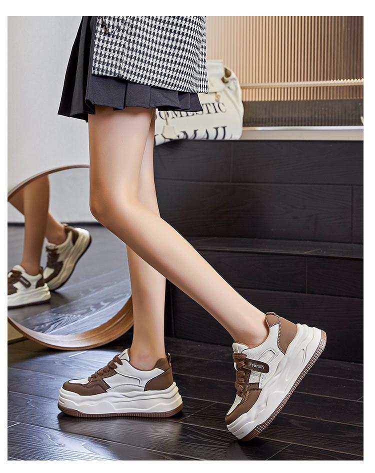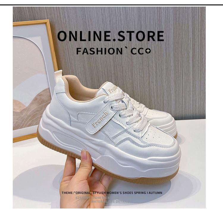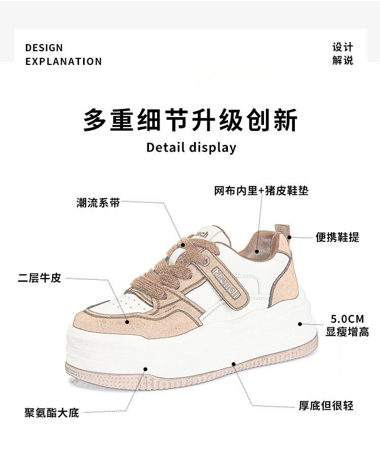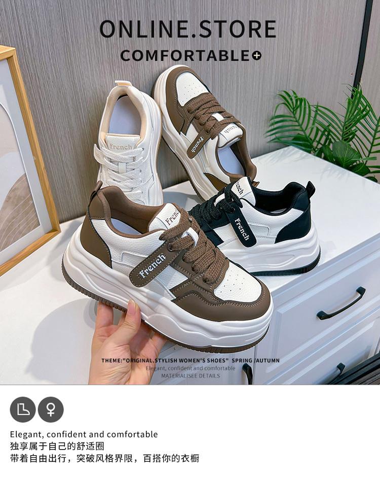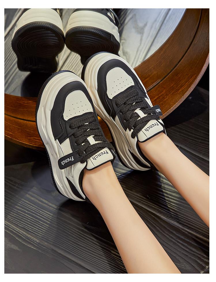 真皮小白鞋女2024春季新款女式休闲单鞋圆头系带板鞋厚底鞋女百搭