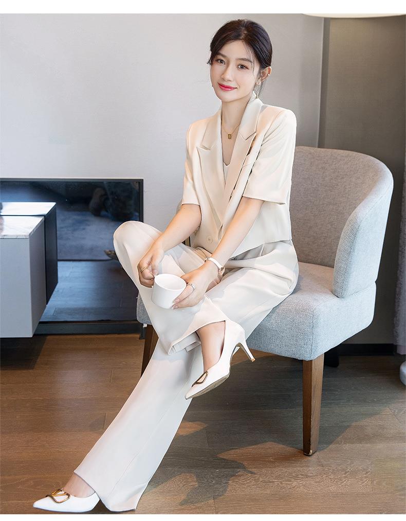 娜璐多 杏色小西装外套女春季2023新款小个子时尚休闲短款设计感西服套装