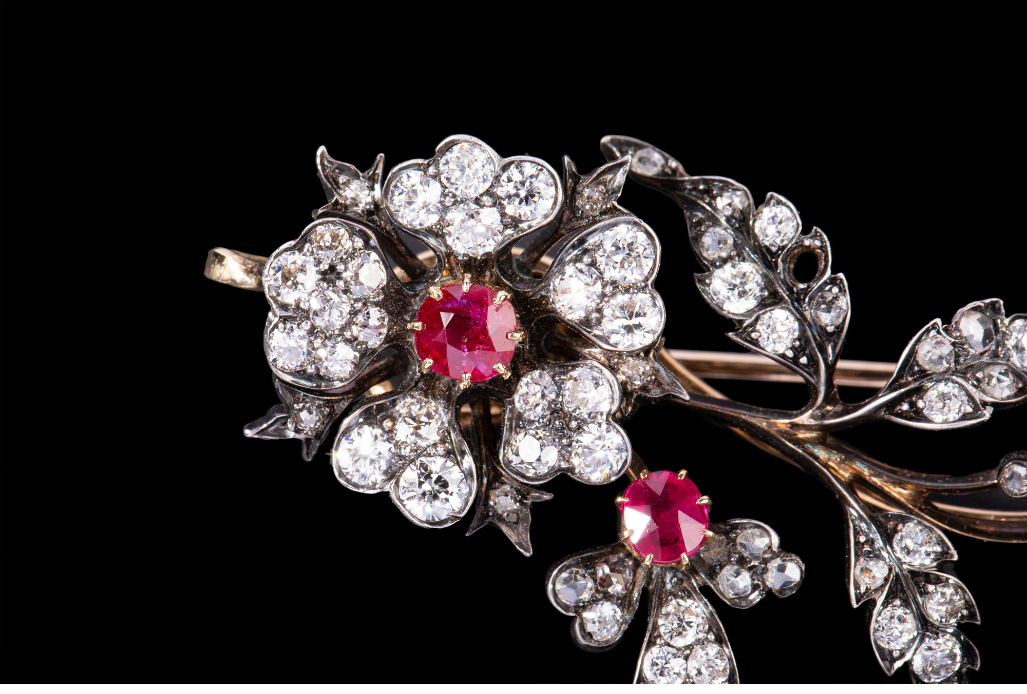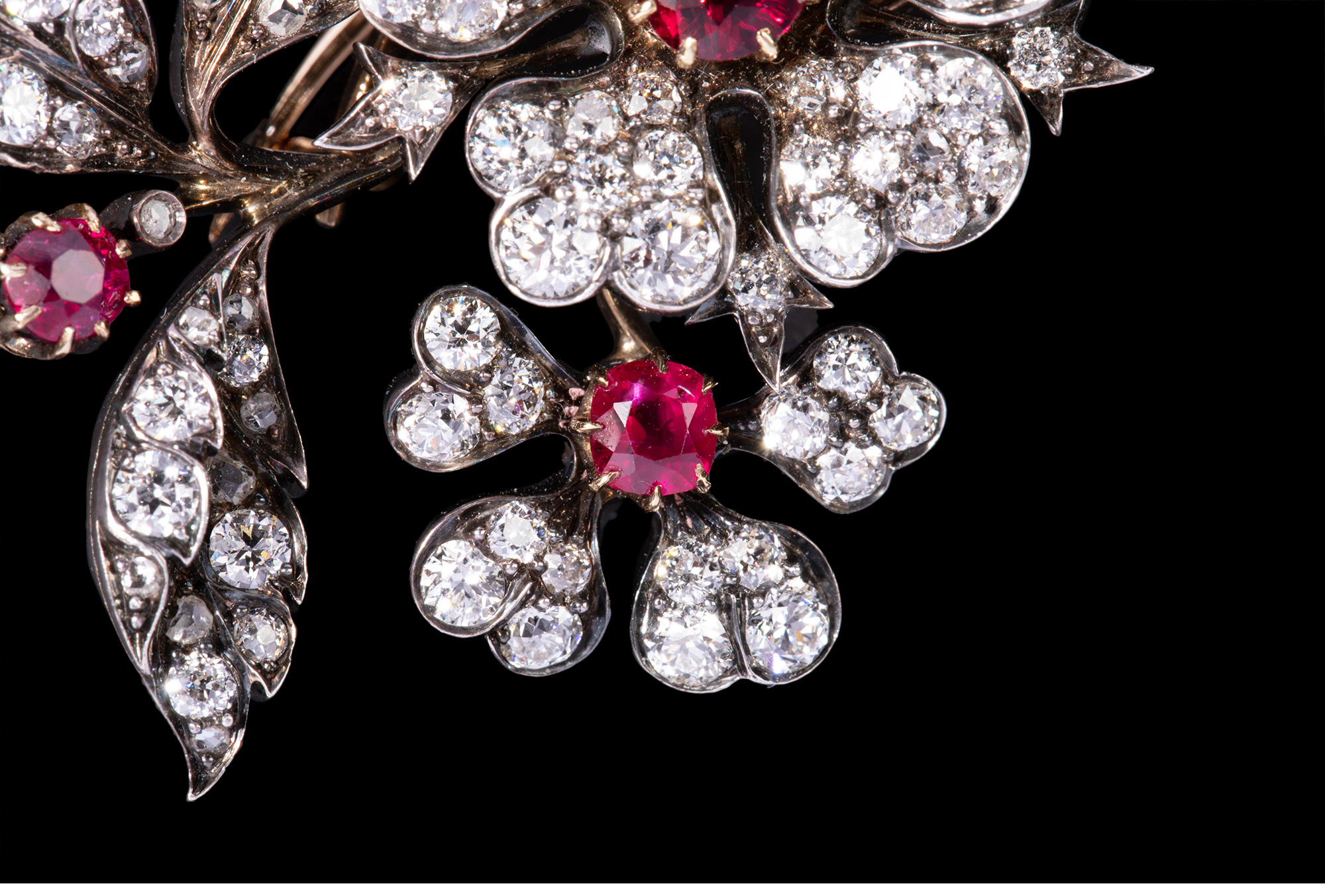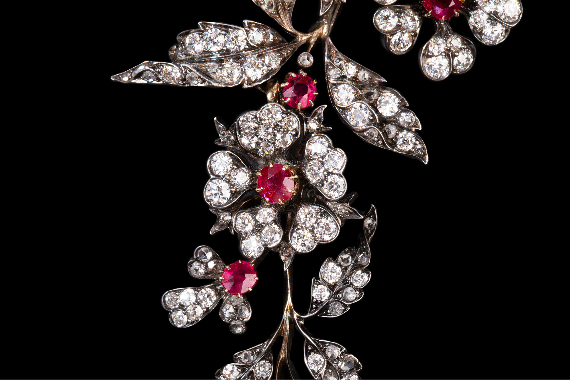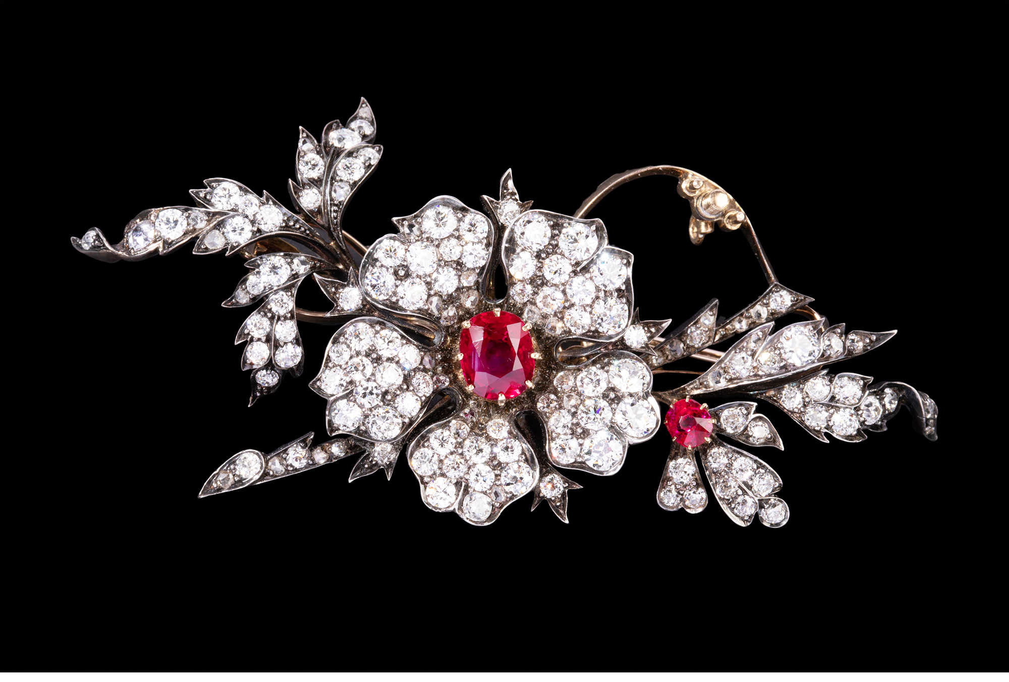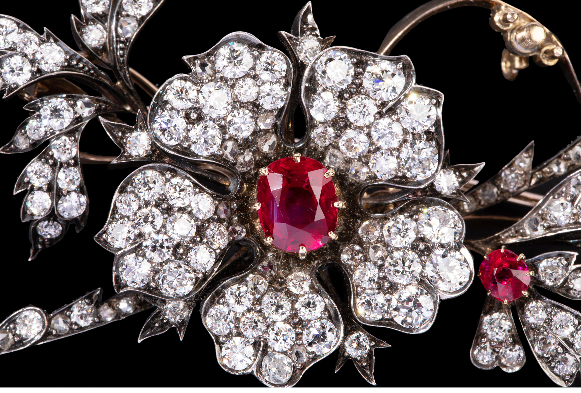 独角鹿西洋古董珠宝黄金纯银镶钻石红宝石橄榄石花鸟可拆卸胸针
