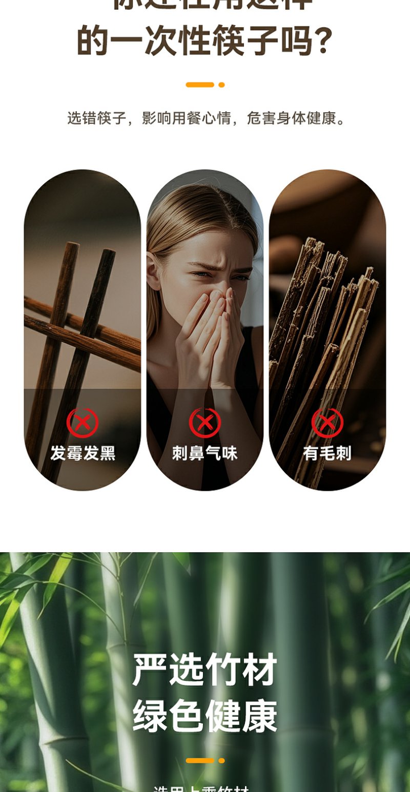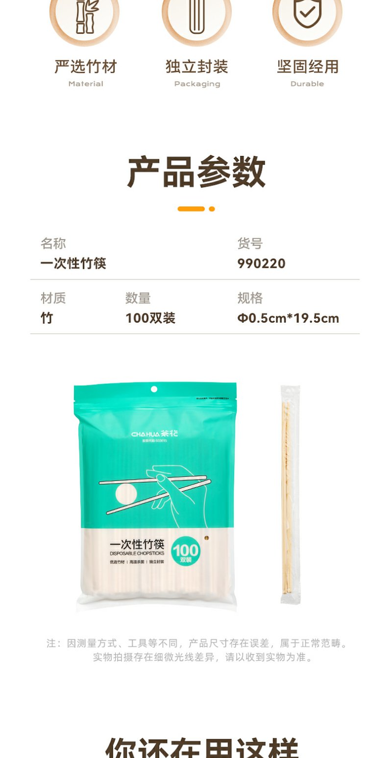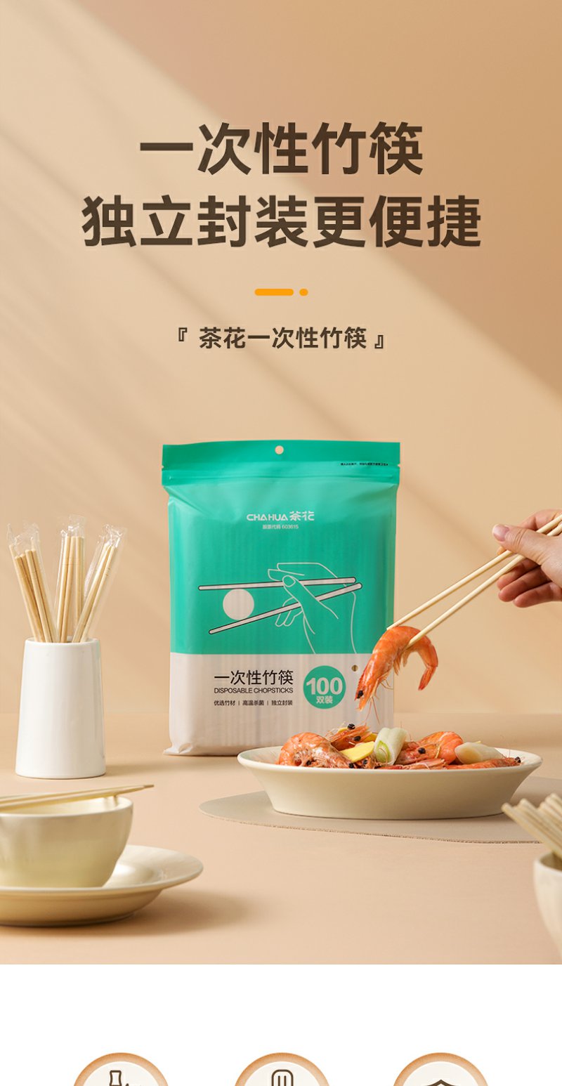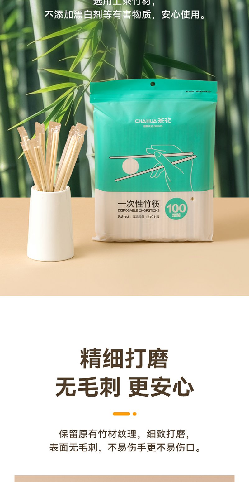 【茶花】一次性竹筷子无毛刺家用商用外卖一次性筷子