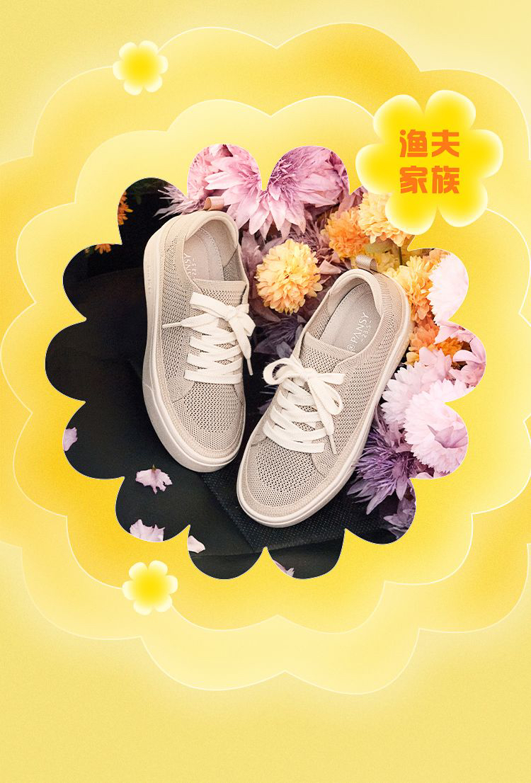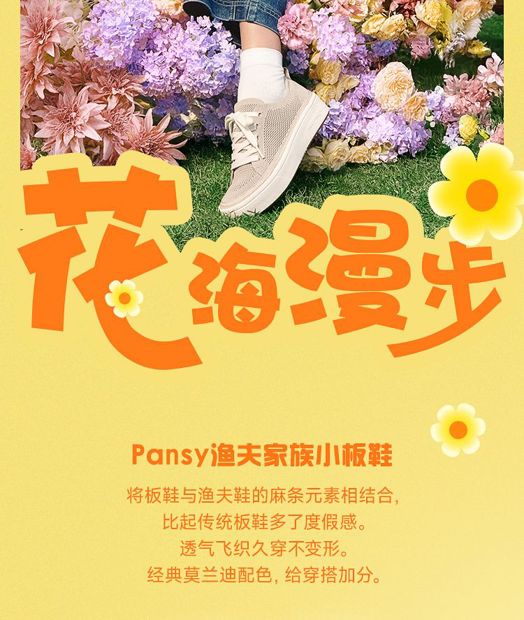 Pansy盼喜女鞋一脚蹬轻便舒适透气飞织渔夫板鞋春季新款
